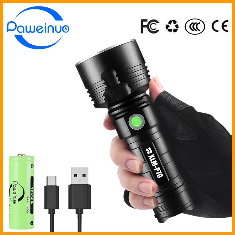 Самая мощная светодиодный ная вспышка Paweinuo фонарь CREE XHP70, тактическая вспышка s XML L2, зарядсветильник от USB, фонарик 18650, ручная лампа