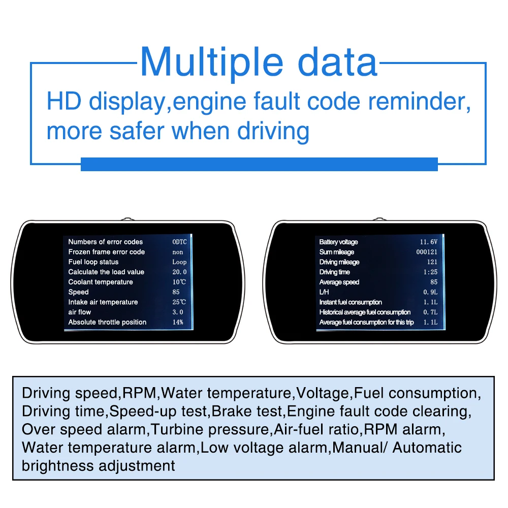 P12Является бортовым компьютером OBD, может отображать много функций, если совместимо. Однако он работает только сНекоторыеАвтомобили после 2008. Пожалуйста, свяжитесь с нами.