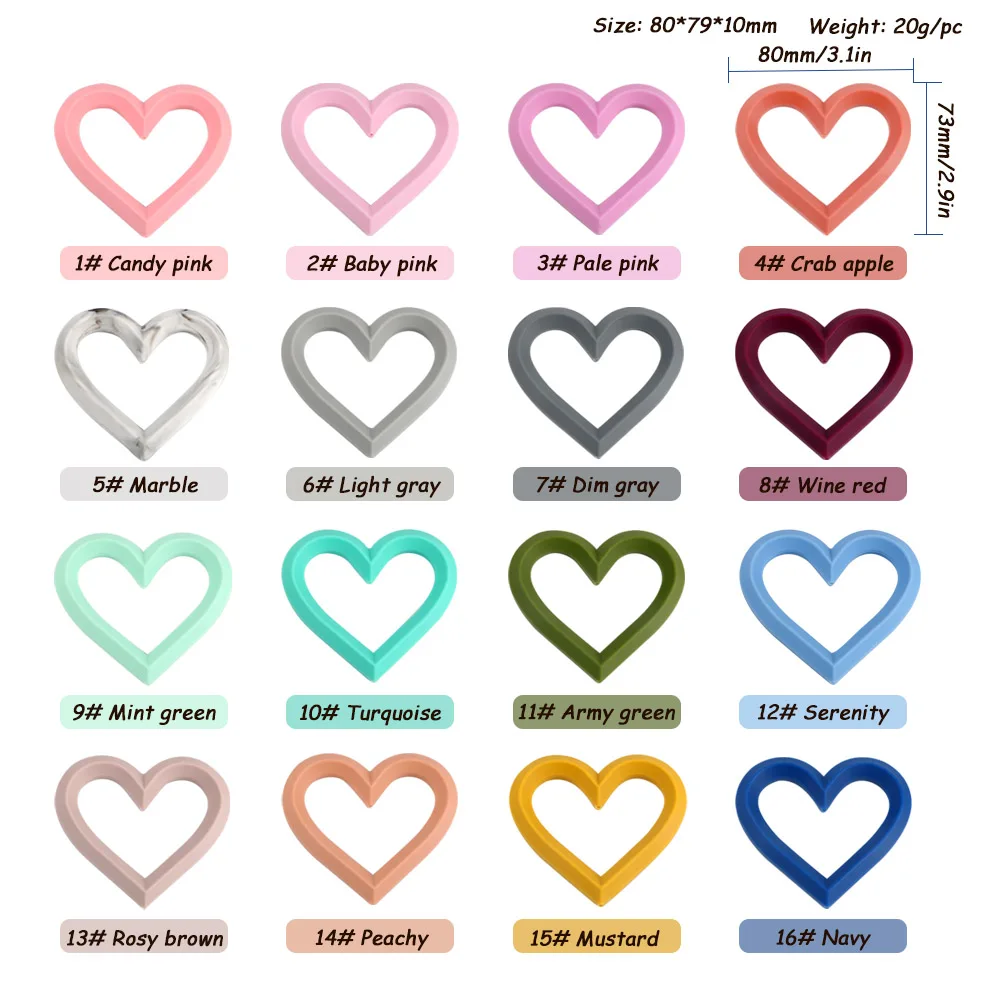 30 шт., силиконовые бусины в форме сердца, для детей