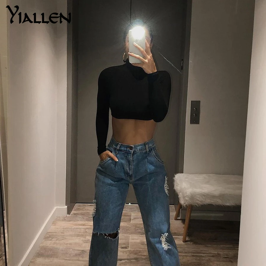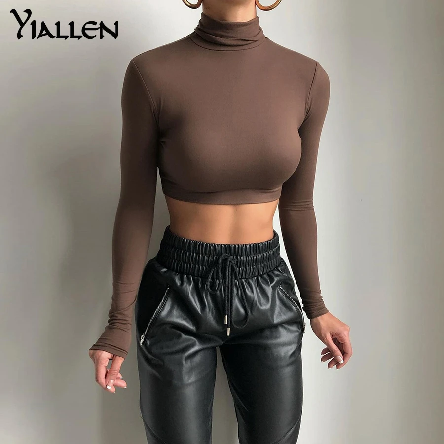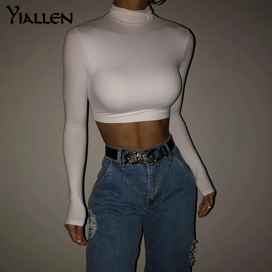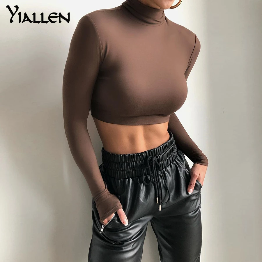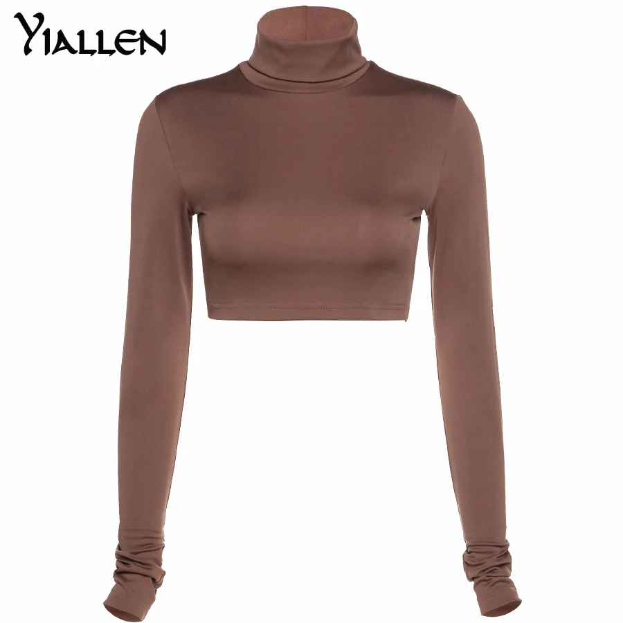 Базовая Женская однотонная водолазка Yiallen, осенняя эластичная повседневная майка, женские универсальные уличные топы для активного отдыха