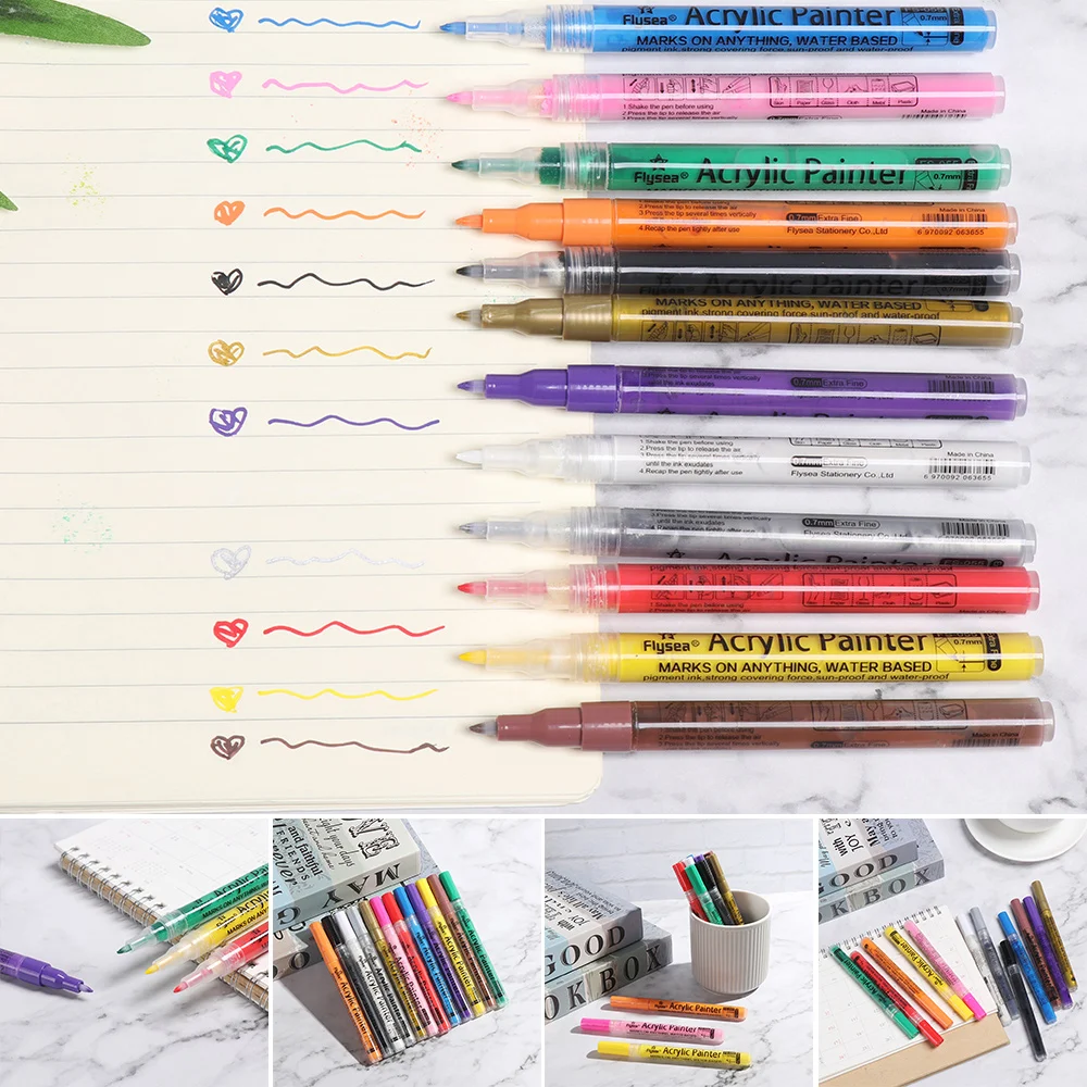 Маркер акварельный перманентный, 12 цветов, для керамики, стекло Rock фарфора, деревянной ткани, холста, граффити