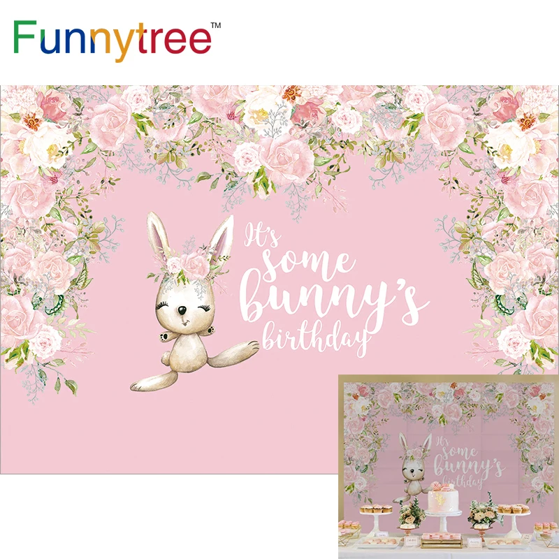 Фон Funnytree с розовым кроликом и пасхальными предметами, весенний праздничный Декор для девочек на 1-й день рождения, цветочный цветок, пастельные детские обои для душа
