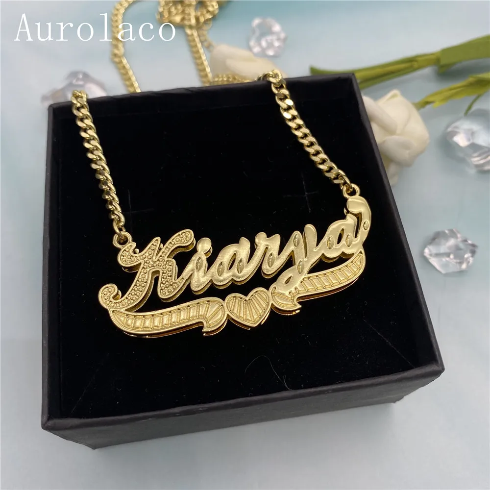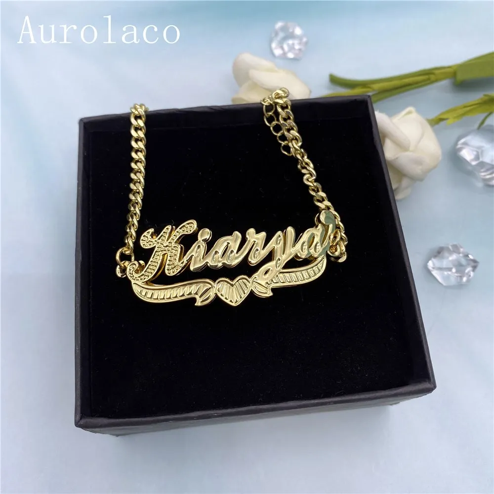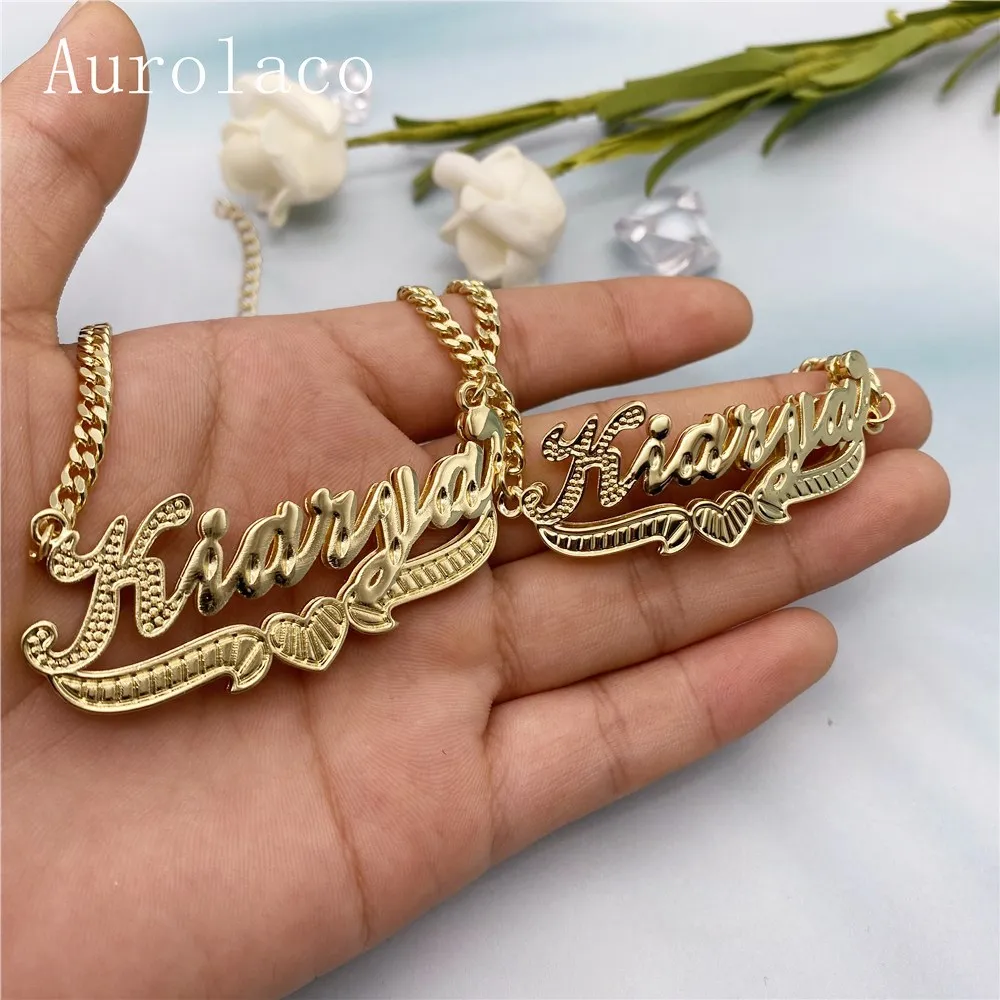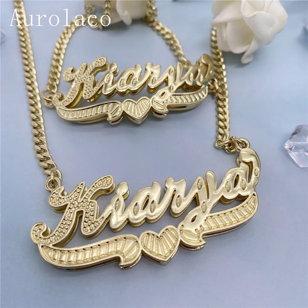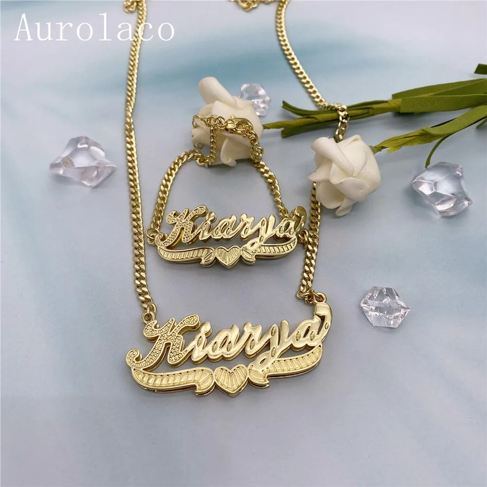 Комплект ювелирных изделий AurolaCo с именем на заказ, ожерелье с именем на заказ, браслет с золотым 3D двойным именем, ожерелье для женщин, подарки