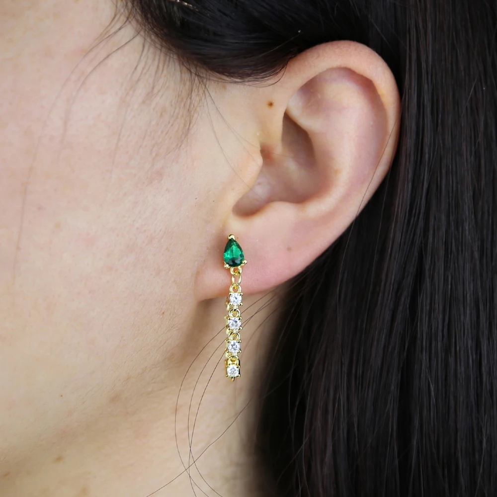 Серьги-подвески с зелеными Фианитами, цепочка с кисточками, Цветной Красочный кубический цирконий, цвет золото, великолепные двухсторонние ювелирные украшения