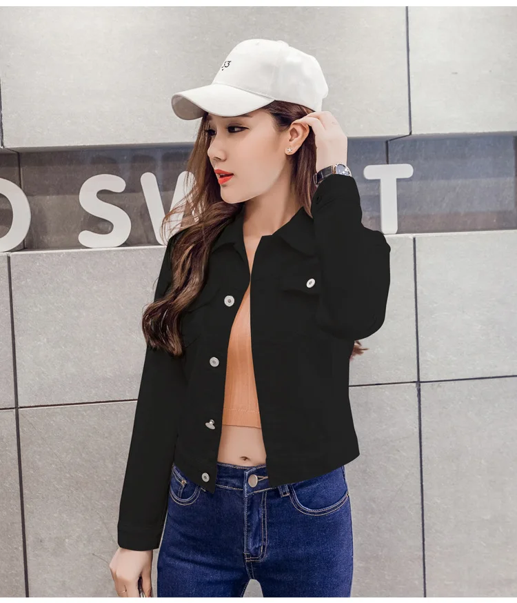 Женская джинсовая куртка, короткая черная или белая джинсовая куртк...