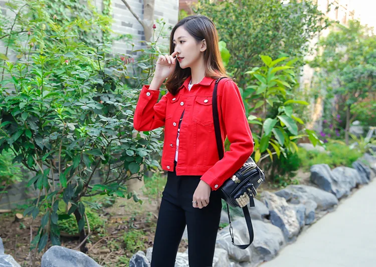 Женские джинсовые куртки и пальто, женские весенне-осенние повседневные короткие джинсовые куртки карамельных цветов