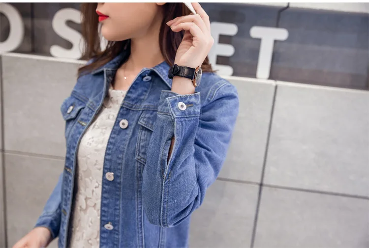 Женская джинсовая куртка, базовая однотонная куртка с длинным рукав...