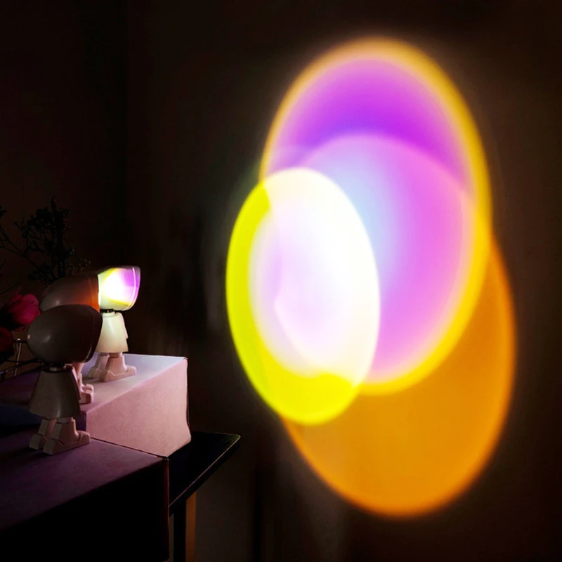 Быстрая доставка, Поворот на 360 градусов, радуга, закат, проектор, робот, Ночной светильник, напольный светильник, украшение на стену, цветная лампа