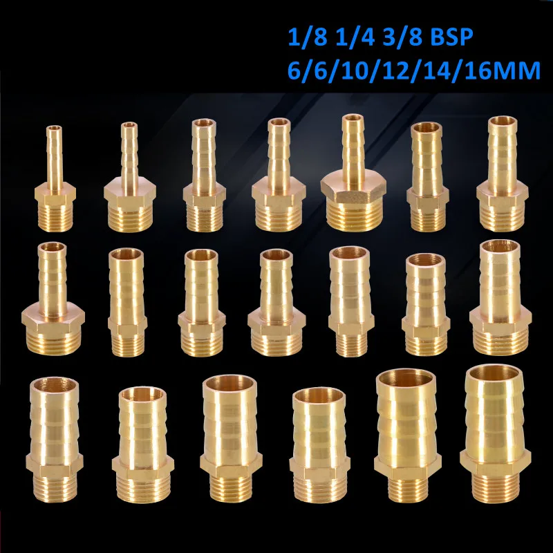 Латунный фитинг для труб 6 мм-19 мм, хвостовик для шланга с зазубриной 18 дюйма 14 дюйма 38 дюйма, стандарт BSP, Штекерный соединитель, медный адаптер, газовый соединитель