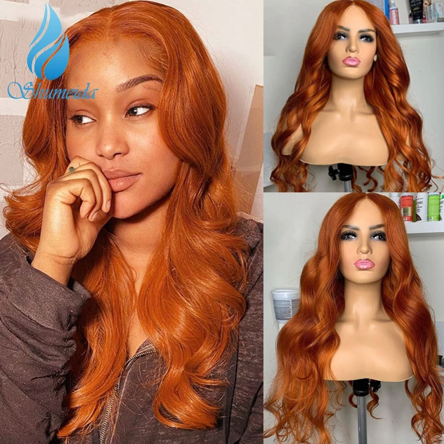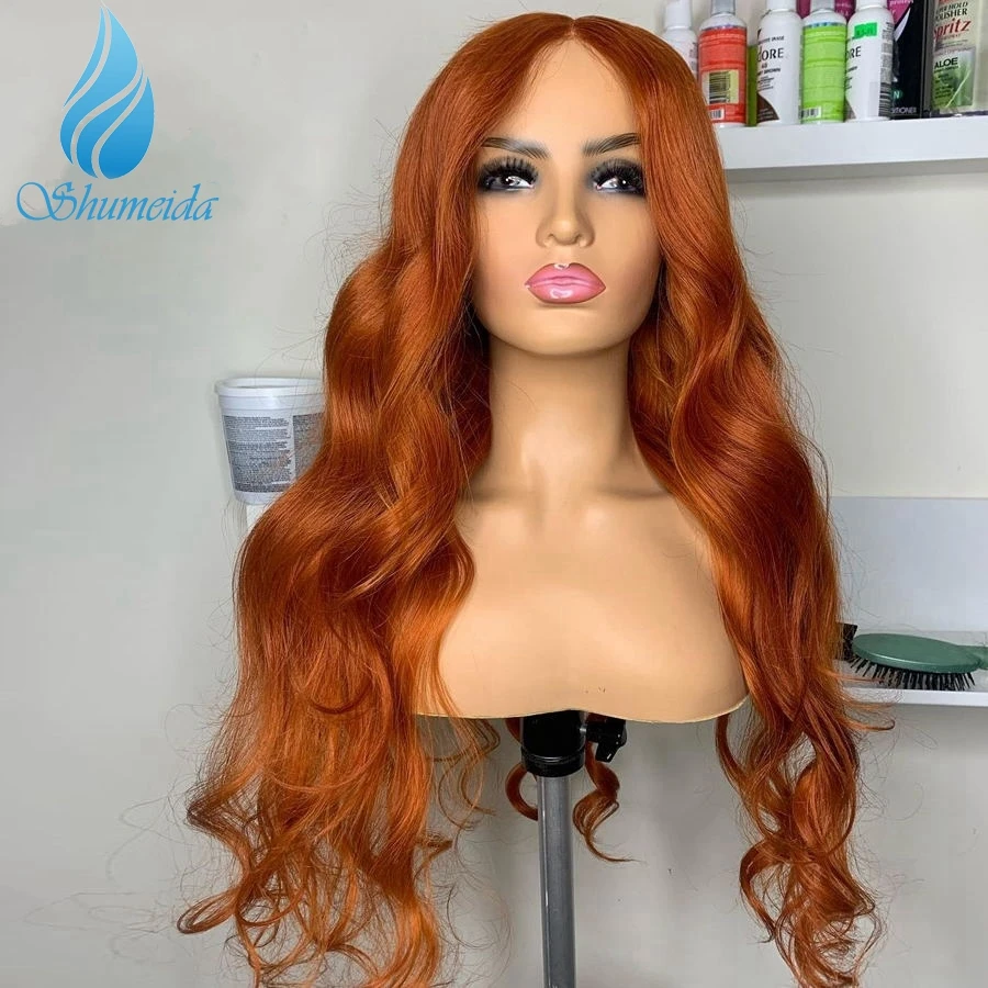 Парики Shumeida 13*4 Для Женщин, бразильские человеческие волосы Remy, парики с детскими волосами с застежкой на шнурке, имбирного оранжевого цвета