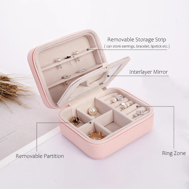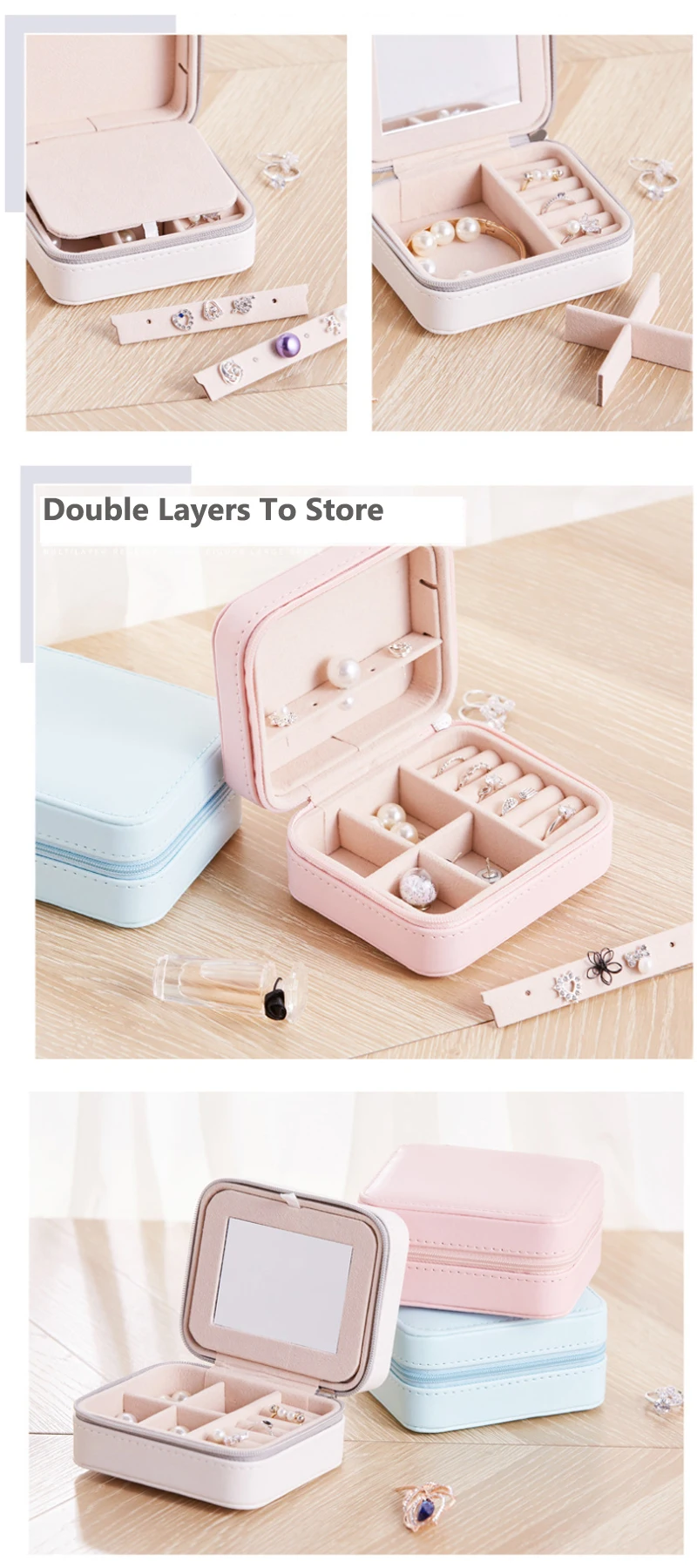 Портативная шкатулка для украшений из ПУ кожи, водонепроницаемый чехол для ожерелья, органайзера, украшение, чехол с зеркалом для хранения вещей