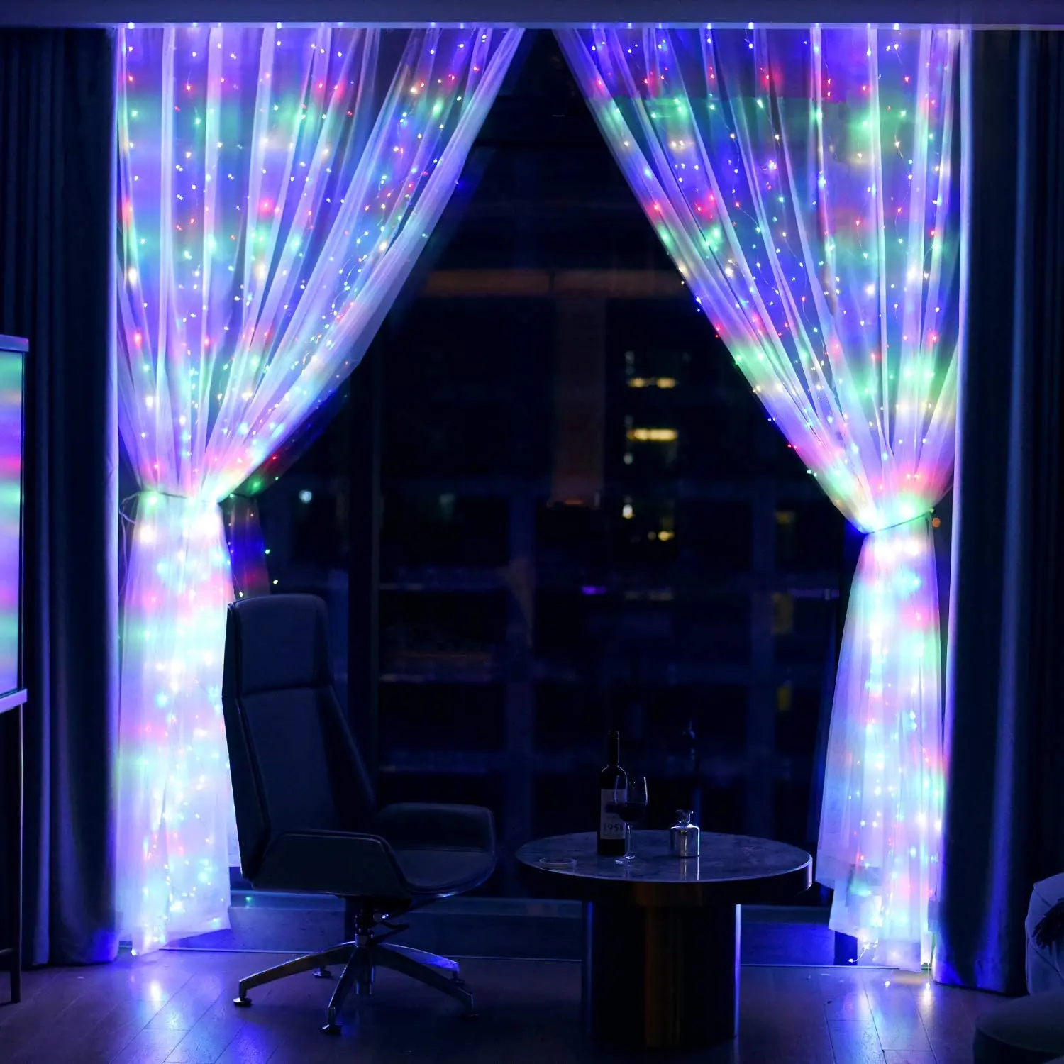 300 светодиодный гирлянда для занавесок, светильник s, Сказочная гирлянда с крючками, пульт дистанционного управления, USB струнный светильник, украшение для рождественской гостиной