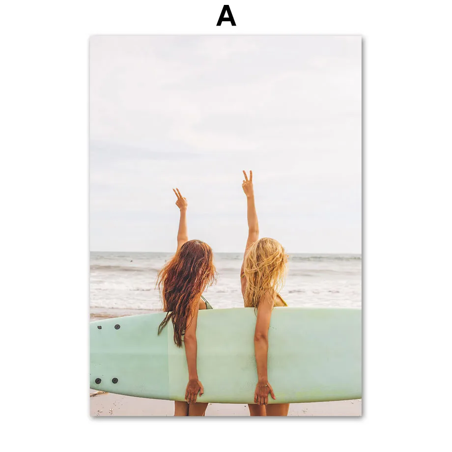 Настенная картина на холсте Пейзаж серфинг девушка пальмовый лист морской пляж нордическая комната Декор плакаты и принты настенные картины для гостиной