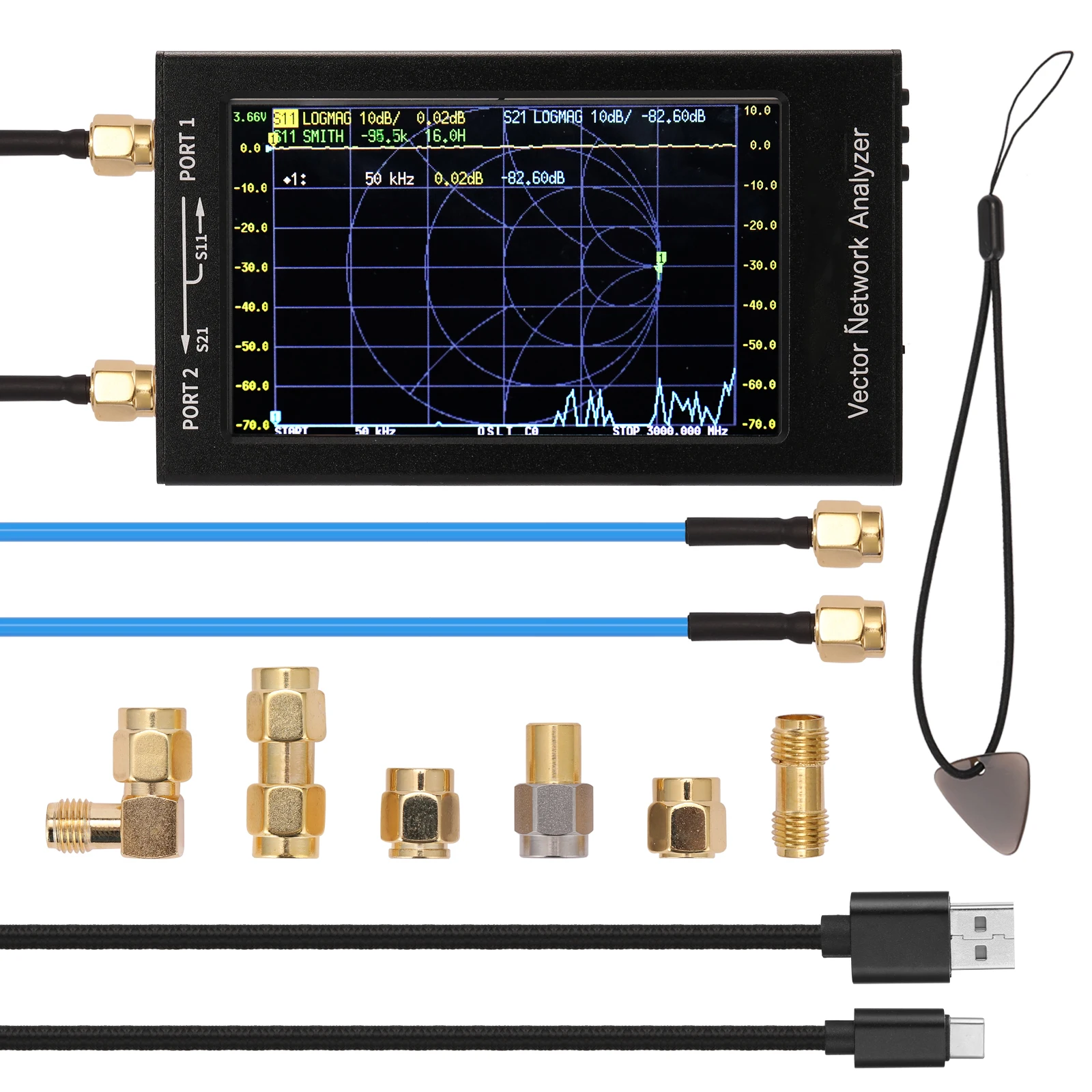 Этот портативный векторный сетевой анализатор является новым продуктом. Он использует 4,3-дюймовый IPS ЖК-дисплей дисплея и алюминиевый сплав чехол. Он оснащен литиевой батареей большой емкости 5000 мАч в качестве стандарта. Поддержка работы сенсорного экрана и боковой кнопки, поддержка китайского и английского интерфейса. Дизайн этого продукта основан на S-A-A OwOcomm V2, а глубокая оптимизация программного обеспечения производится на основе предыдущего продукта. Диапазон измерений увеличен до 3 ГГц, а динамический диапазон больше. Измерение более точное, и операция более удобна.Особенности:4,3-дюймовый IPS ЖК-дисплей дисплей, разрешение 800*480, ультра-широкий обзор угол, при длительном использовании не режет глаза.Чехол из алюминиевого сплава эффективно защищает от электромагнитных помех для обеспечения точности измерений.Радиочастотный интерфейс SMA, который удобен для подключения различных протестированных деталей.Полноразмерный дизайн экрана, с 3 боковыми кнопками одновременно, гибкой и удобной в эксплуатации.Поддержка китайского и английского интерфейса.Оптимизированный дизайн пользовательского интерфейса, удобный для пользователей для выполнения операций измерения.Поддержка регулировки яркости экрана.Прошивка может быть обновлена через виртуальный u-диск, программист не нужен, а Прошивка может быть обновлена через прилагаемый usb-кабель для передачи данных type-c.Стандартные Калибровочные детали хорошего качества и RG405 фазостабильный кабель для обеспечения точности калибровки.Разработан с интерфейсом выхода USB, который может поддерживать выходную мощность 5 В/1 А.С помощью 2А высокой токовой подзарядки IC время подзарядки короче.Поддерживая программное обеспечение хост-компьютеров, хост-компьютеры поддерживают китайские и английские интерфейсы.Изображения экрана устройства можно получить, сделав скриншот хост-компьютеров.Функция: может измерять параметры S, соотношение волн постоянного напряжения, диаграмму Смита, фазу, задержку группы и т. д.Характеристики:Материал: алюминиевый сплав (чехол)Основной цвет: черныйАккумулятор: 1 * литиевая батарея, 5000 мАчЧастота: 50 кГц-3 ГГцВыходная мощность RF: -9 дБм (ошибка в пределах 1 ГГц: ± 1 дБ)Точность частоты: <0,5 ppmS21 с динамическим диапазоном: 70dB (1,5 ГГц), 60dB (3 ГГц)S11 с динамическим диапазоном: 50dB (1,5 ГГц), 40dB (3 ГГц)2-портовый обратные потери: 20dB typ (1,5 ГГц), 13dB мин (3 ГГц)Количество калибровочных точек: 101 точкаКоличество точек сканирования: 101 точкаКоличество следов: 4Количество точек отметки: 4 (планку отметки можно перемещать вверх и вниз на экране)Интерфейс USB: USB Type-C Режим связи: CDC (серийный)Настройка сохранения: 5 групп (после сохранения, его можно сразу напомнить, когда он используется снова, нет необходимости повторять, И сохраненные параметры до последнего отключения будут автоматически отозваны, когда он снова включен)Поддержка калибровки результатов интерполяции, может измерять без повторной калибровки после регулировки частотного диапазона измеренияВремя сканирования: около 1,9 s/1 раз (50 кГц ~ 3000 МГц полный диапазон частот)Размер изделия: 140*73*20 мм/5,5*2,9 * 0.8inВес товара: 270 г/9,5 унцииРазмер упаковки: 250*150*50 мм/9,8*5,9 * 2.0inВес упаковки: 507 г/1.1lbУпаковочный лист:1 * хост1 * SMA открытый калибровочный набор1 * SMA Набор для калибровки короткого замыкания1 * SMA 50Ω Набор для калибровки нагрузки1 * SMA-KK адаптер