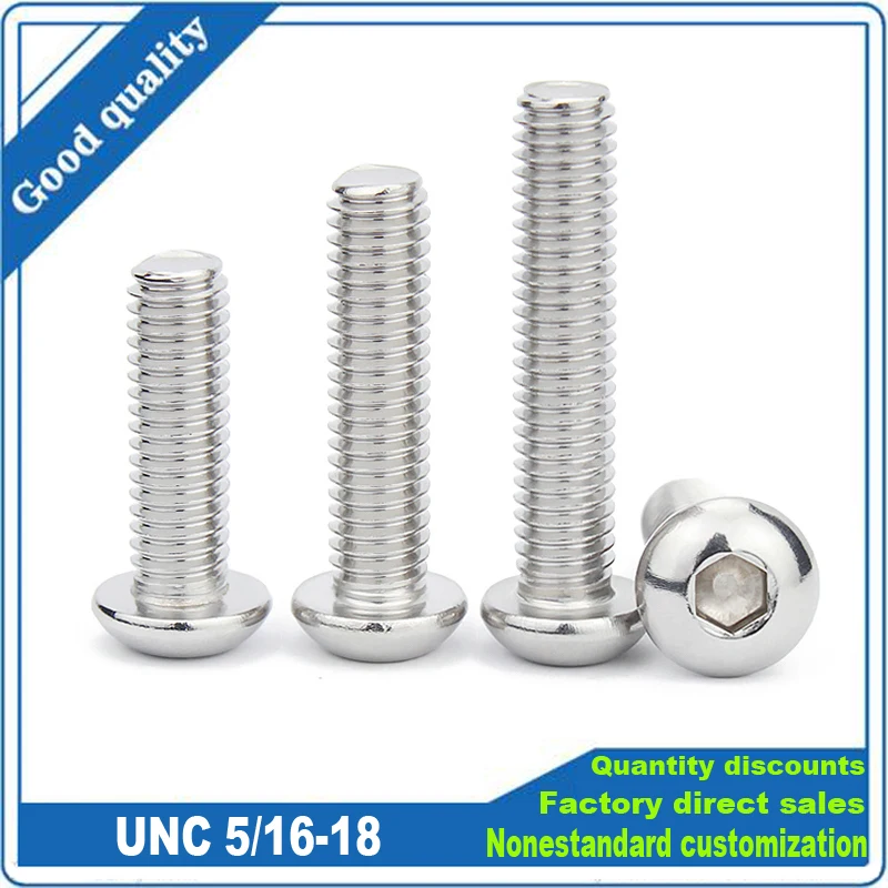 10 шт крупная резьба Allen шестигранный разъем с полукруглой головкой круглый болт резьбой UNC 516-18 ISO7380 304 A2-70 Нержавеющаясталь