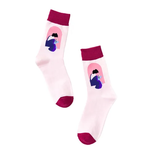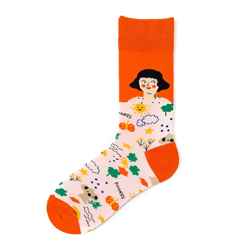 Лидер продаж забавные Женские носочки на каждый день с изображением героев мультфильмов, для девочек портрет красный зеленый Happy обувь в японском стиле Харадзюку на цветочный катания на скейтборде