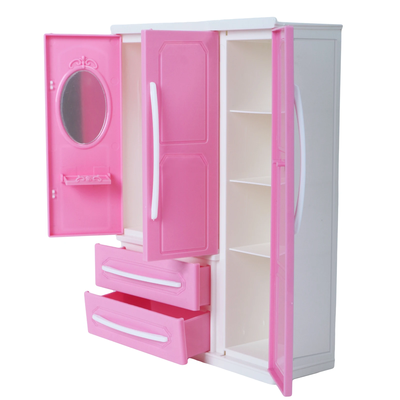 Кукольная мебель 54 шт.компл. = 1 розовый шкаф + 1 стойка для обуви + 52 разные Аксессуары Одежда; Платья; Сезон осень обувь для куклы Барби
