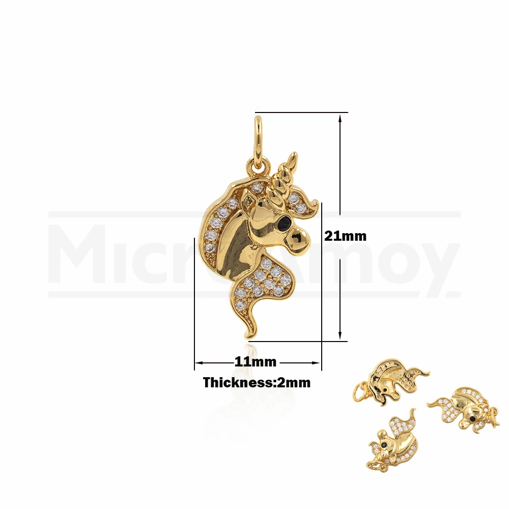CZ кубический подвеска в виде единорога из циркония кулон животного браслеты с подвесками DIY ювелирных изделий браслет ожерелье аксессуары 21x11x2mm