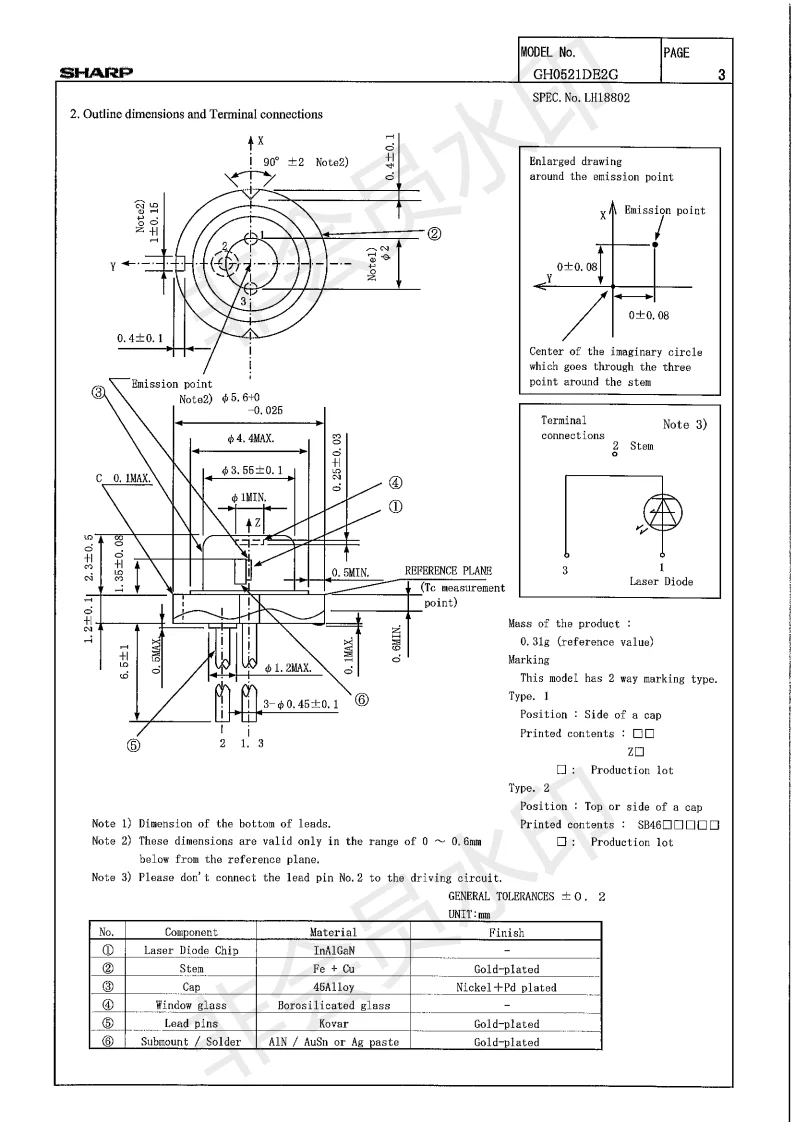 Sony SLD3235VF TO18-5.6mm сине-фиолетовый 100 нм МВт лазерный диод ...