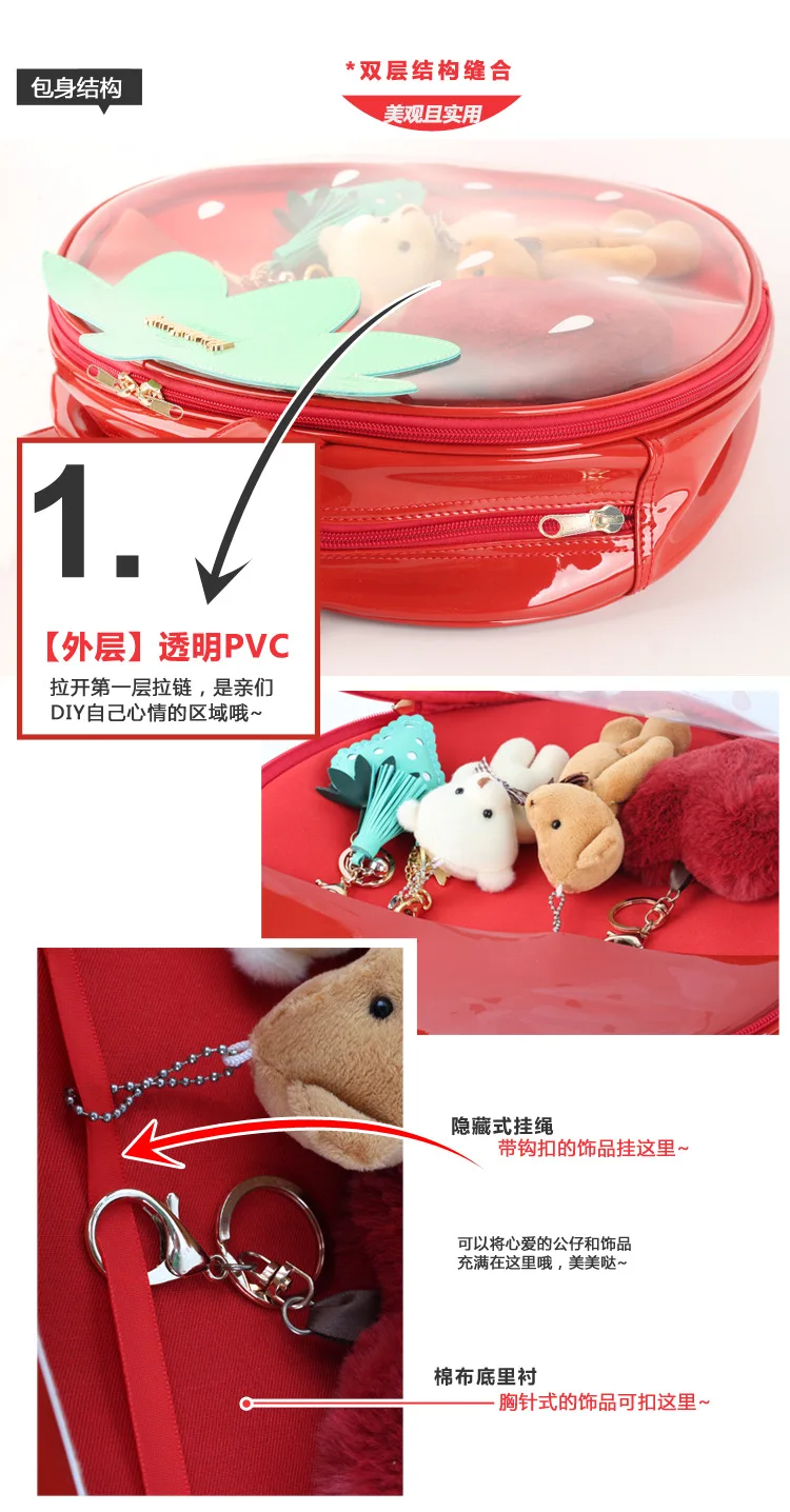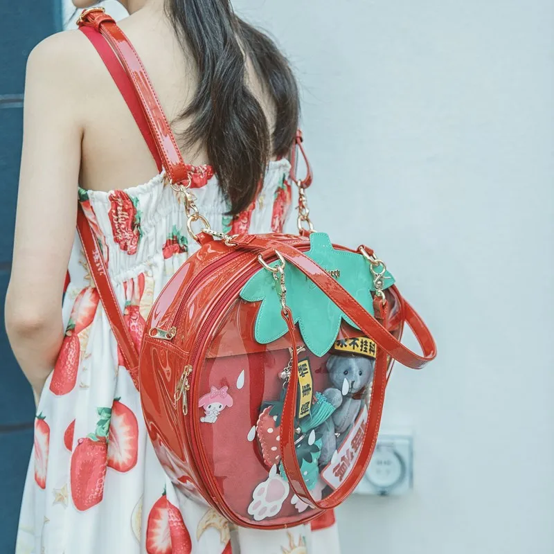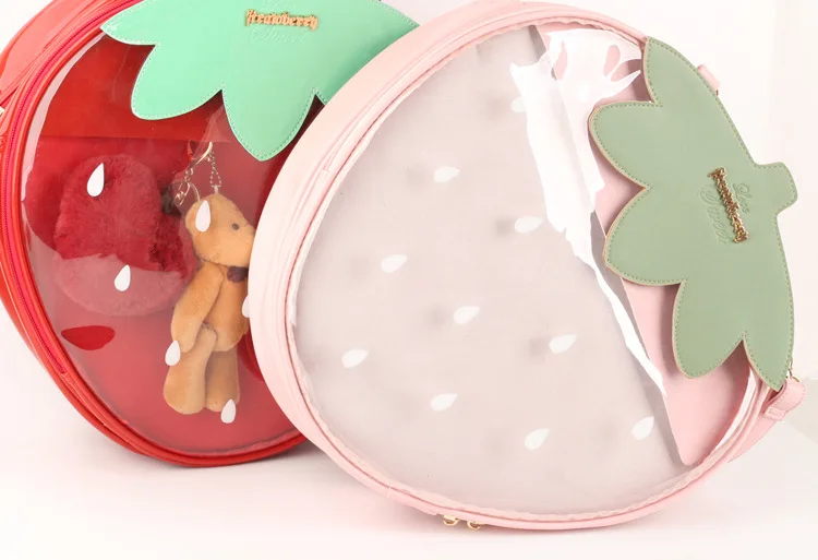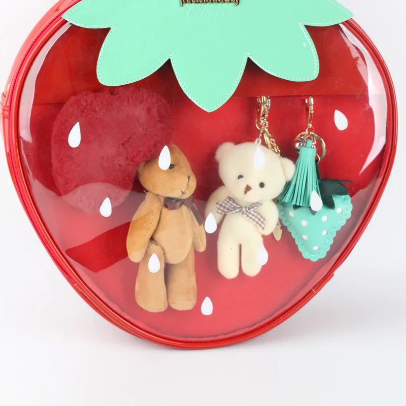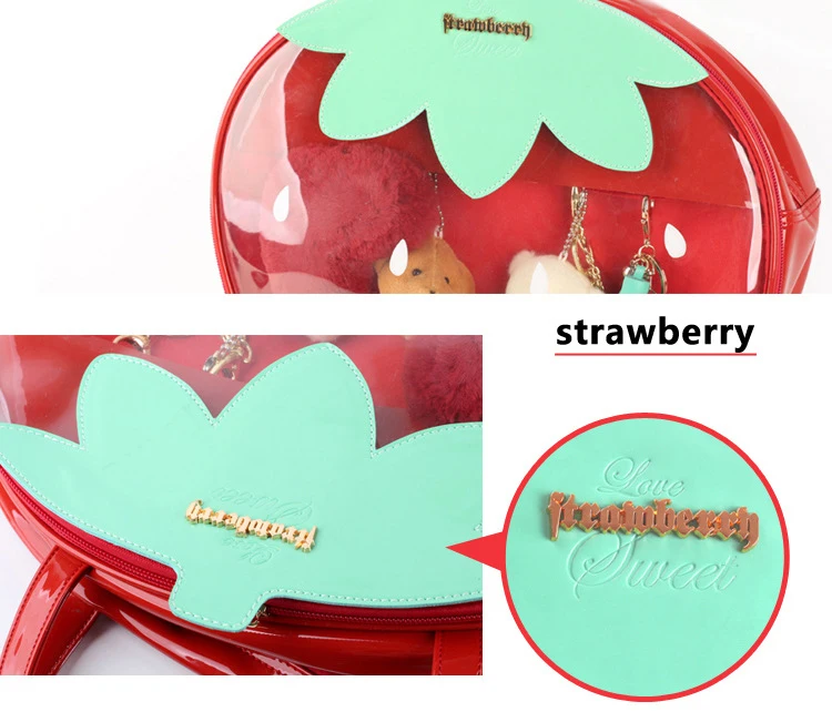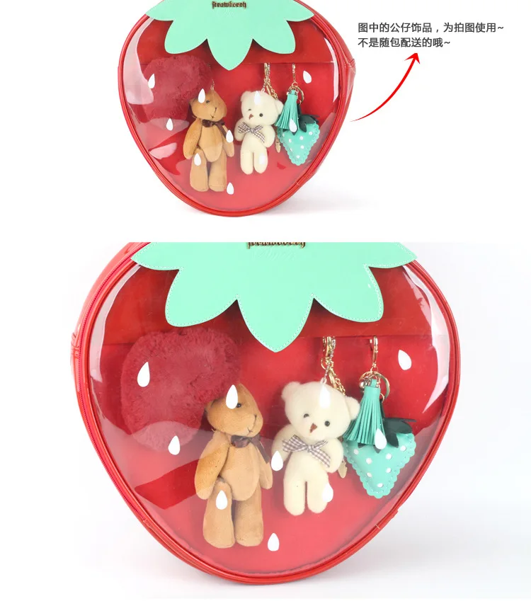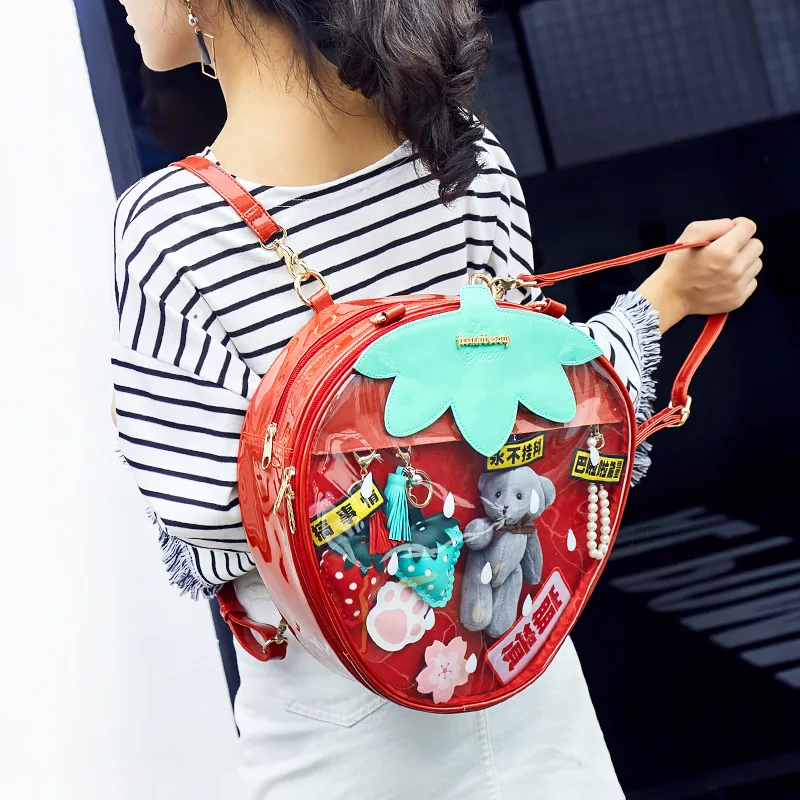 Прозрачный рюкзак для девочек-подростков, школьный ранец из искусственной кожи с рисунком клубники и Лолиты, дамская сумка красного цвета
