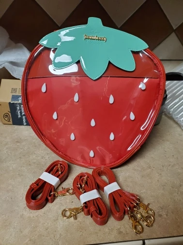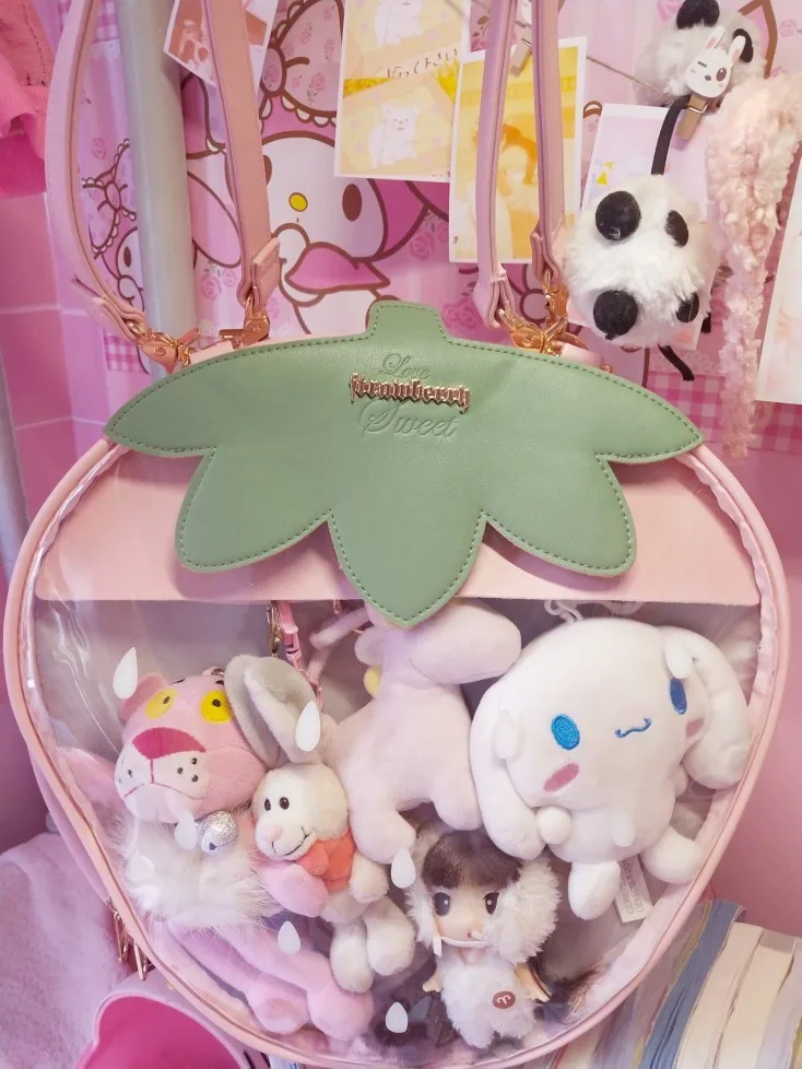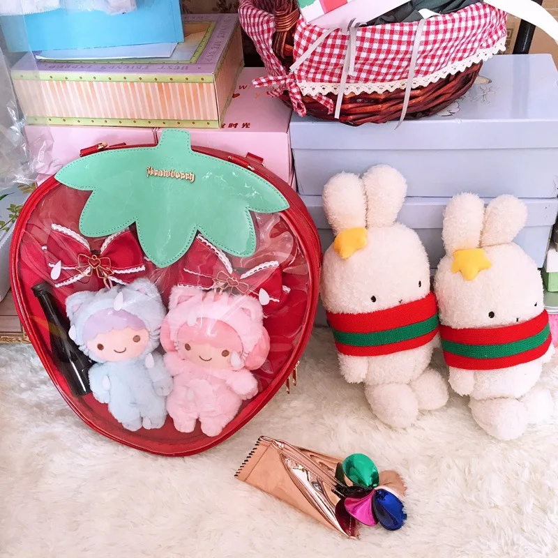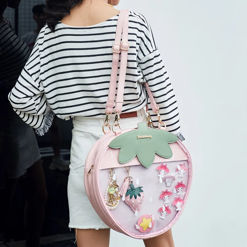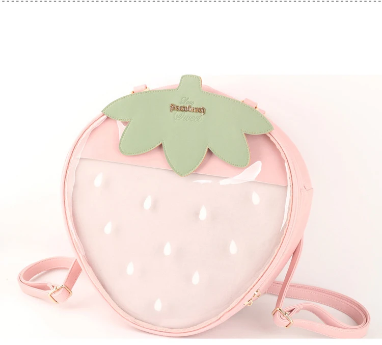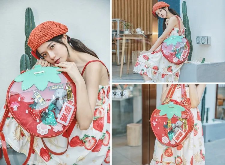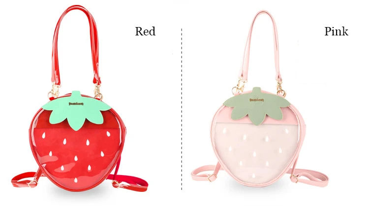 Прозрачный рюкзак для девочек-подростков, школьный ранец из искусственной кожи с рисунком клубники и Лолиты, дамская сумка красного цвета