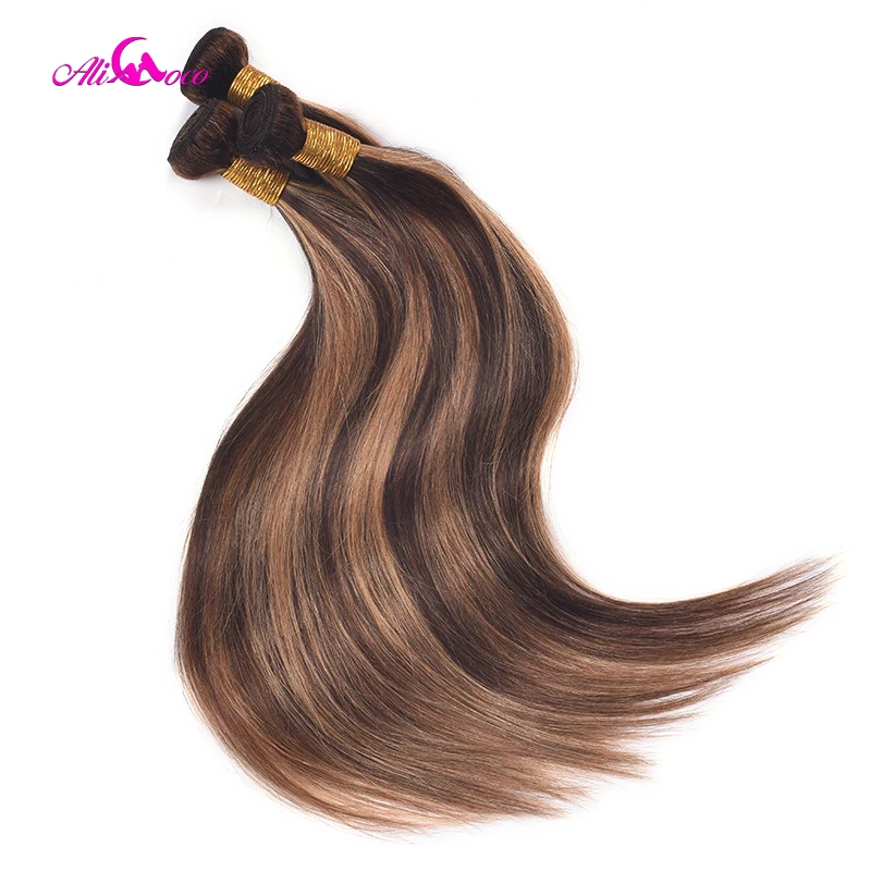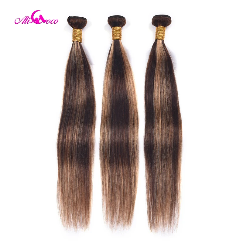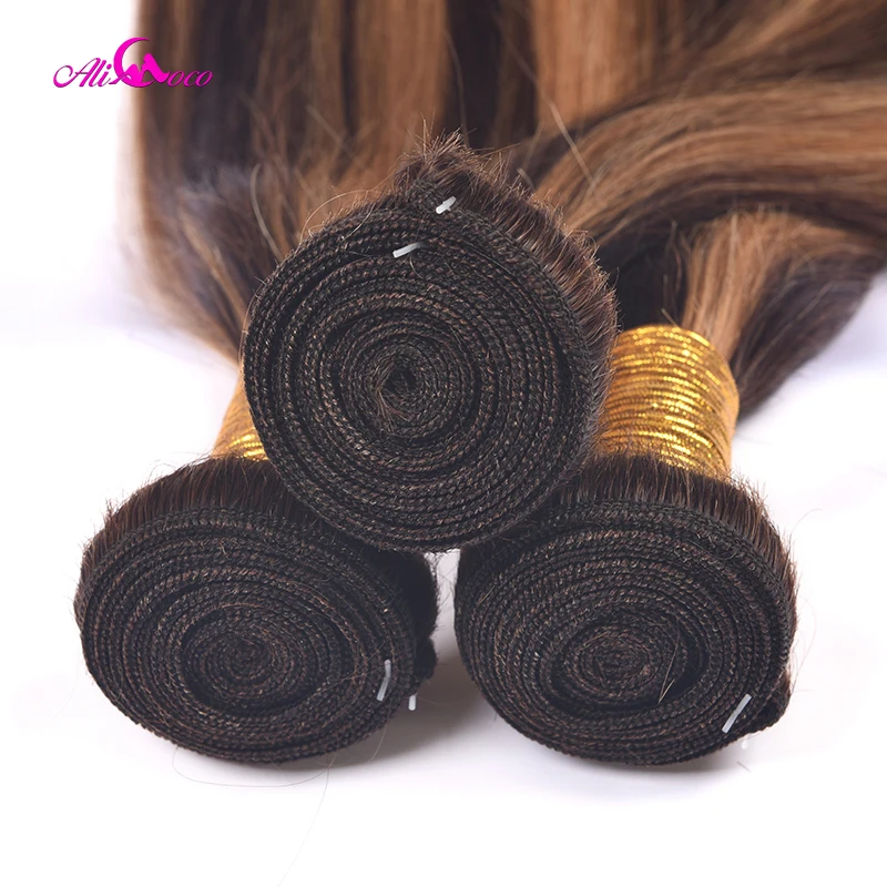 Али-Коко бразильские кудрявые вьющиеся волосы с эффектом деграде (переход от темного к светлому), пряди кости прямые человеческие волосы пряди P430 коричневого цвета с изюминкой Цвет Волосы Remy вплетаемые пряди