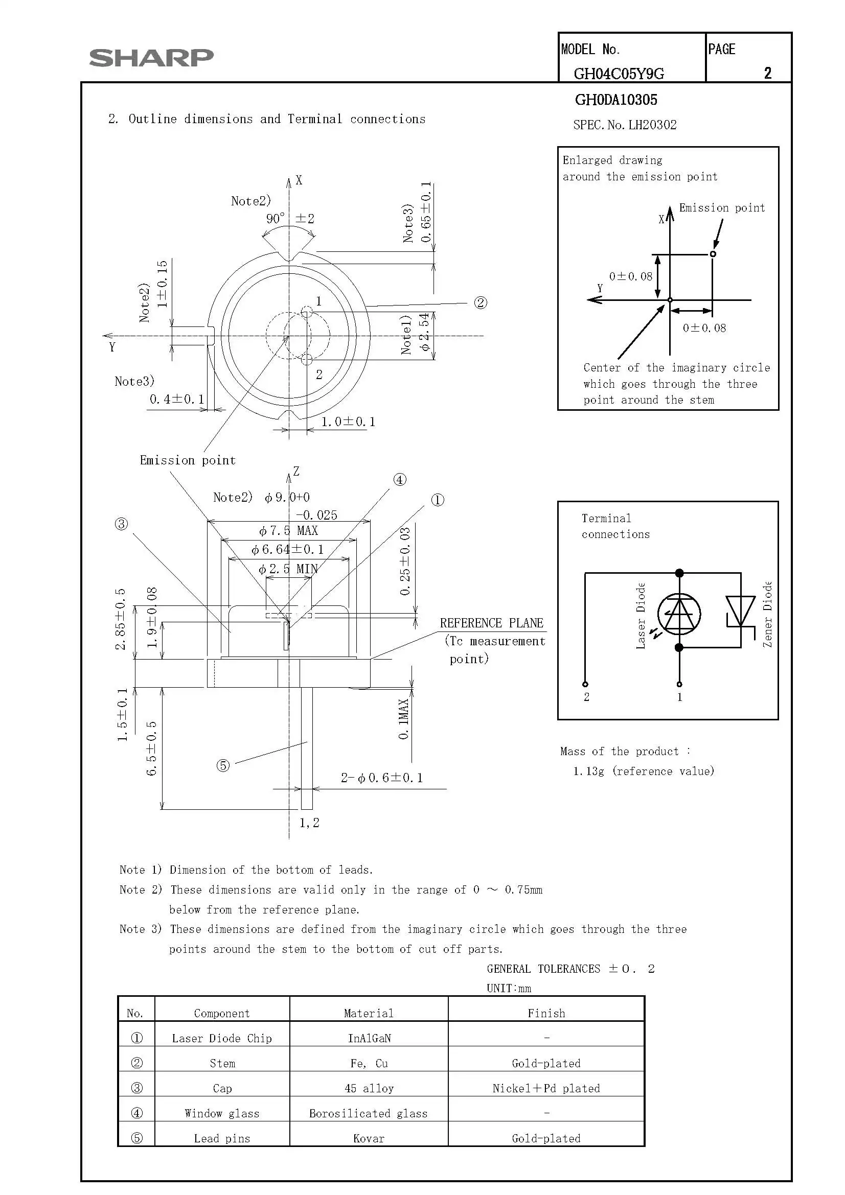 Диод лазерный SHARP GH04C05B9G, 9 мм, синий, 440 нм, 445 нм, 5 Вт