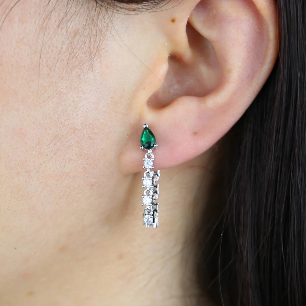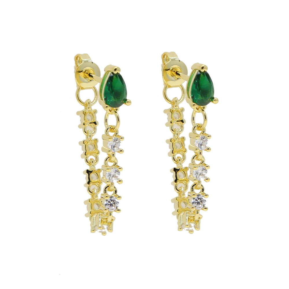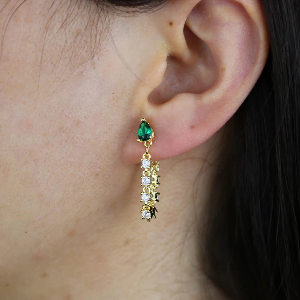 Минималистичные длинные висячие серьги-цепочки, ювелирные изделия, маленькая форма слезы с зеленым фианитом, цепочка с кисточкой, романтичные корейские серьги для женщин
