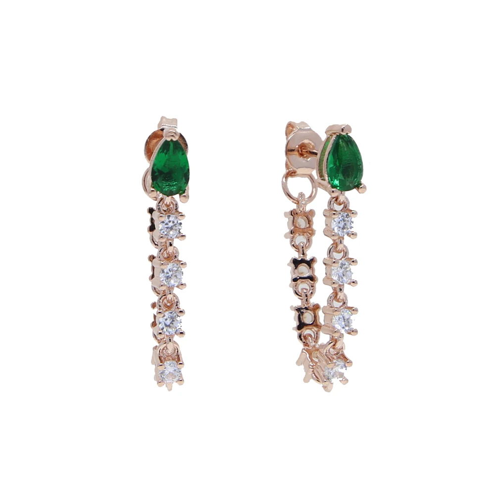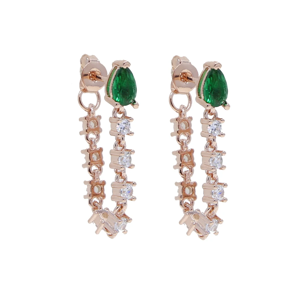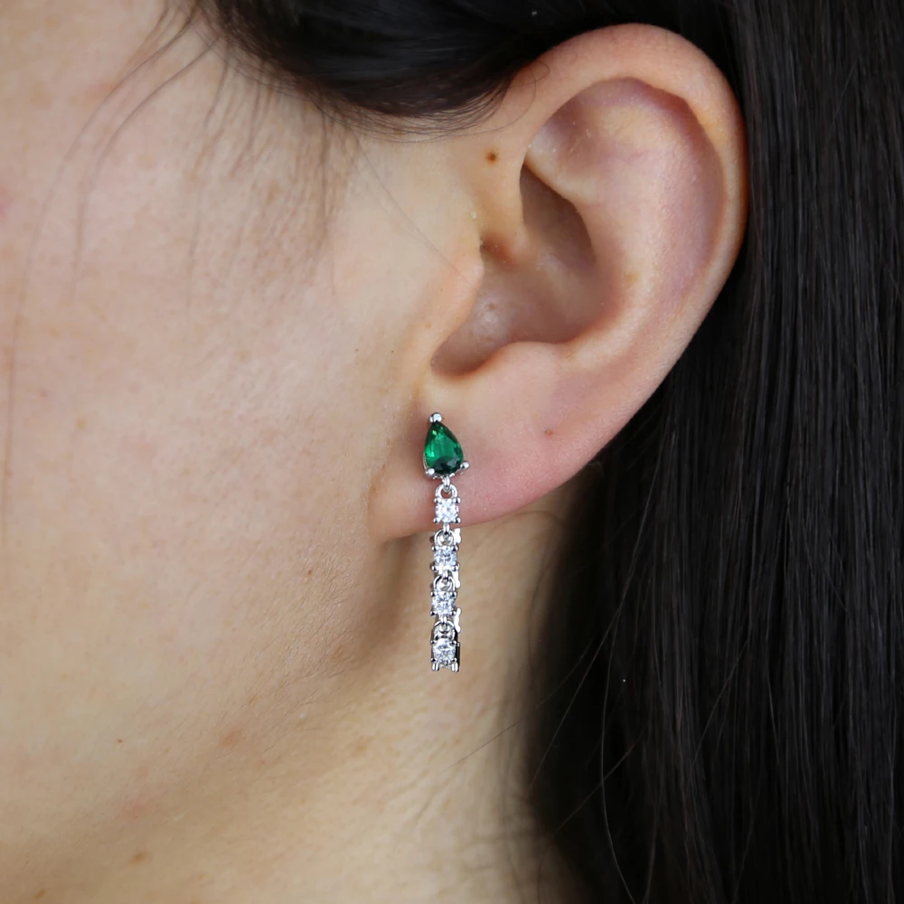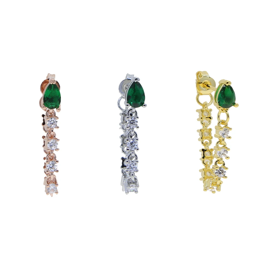 Минималистичные длинные висячие серьги-цепочки, ювелирные изделия, маленькая форма слезы с зеленым фианитом, цепочка с кисточкой, романтичные корейские серьги для женщин