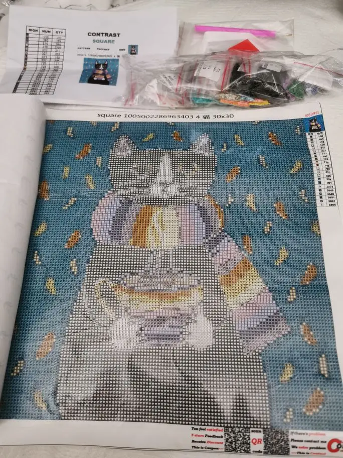 Картина из страз, животные, енот, балет, кот, повар, 5D, сделай сам...