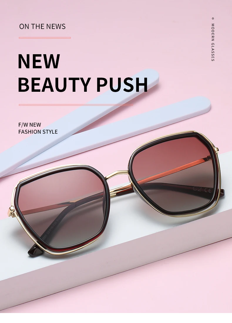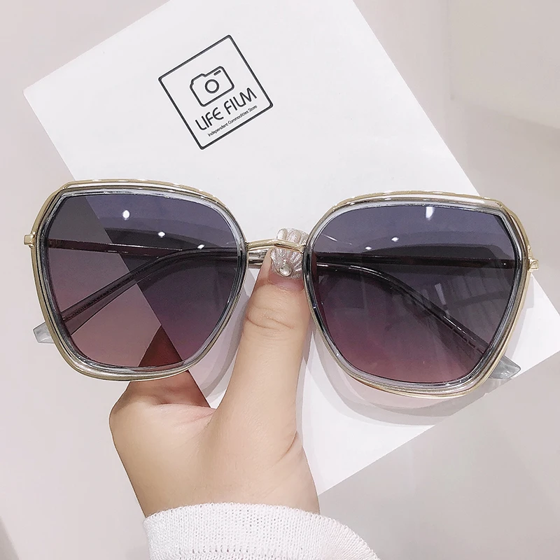 2021 новые модные солнцезащитные очки для женщин Корейский тренд ретро большая оправа коричневые поляризованные очки для женщин роскошный бренд 50560
