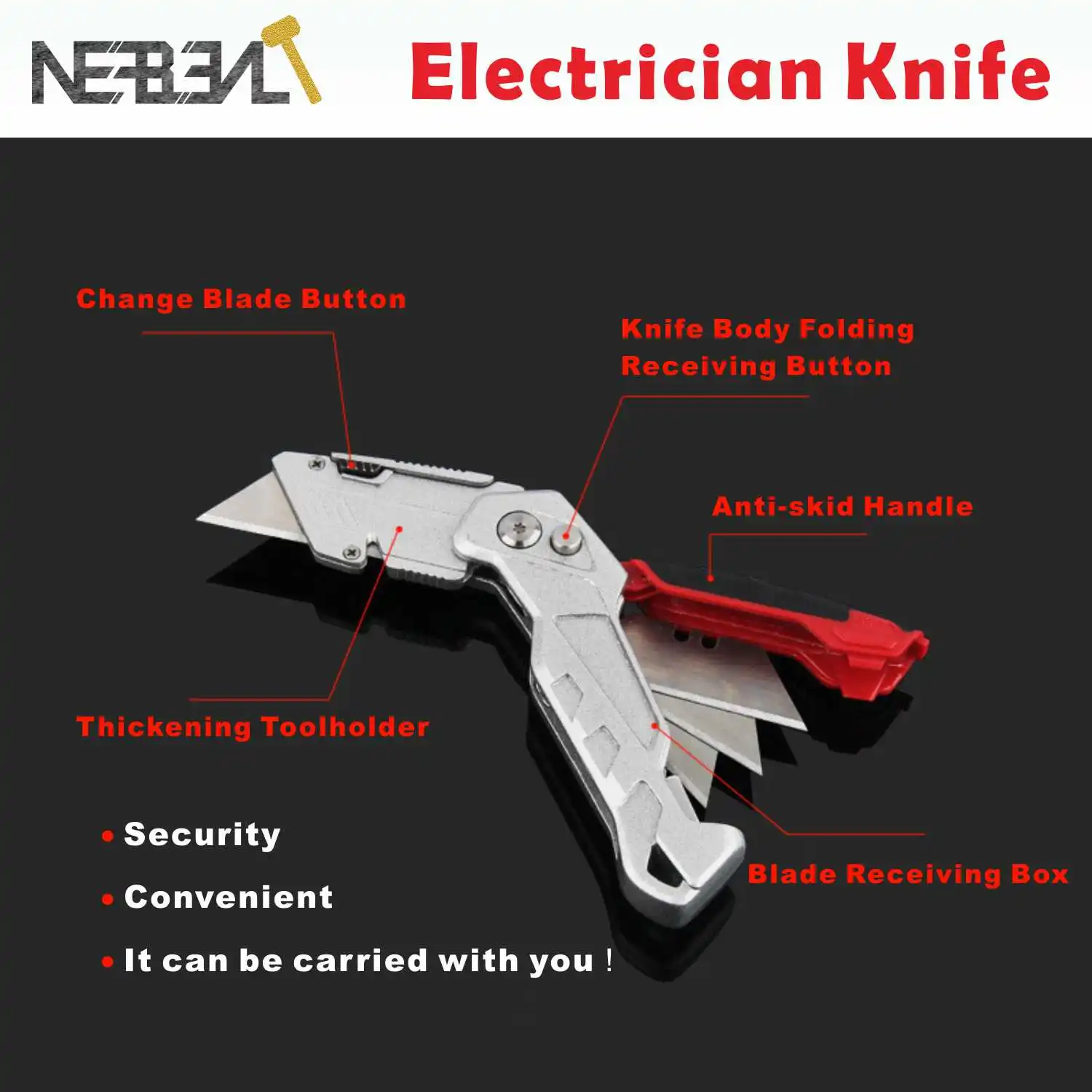 Многофункциональный складной нож электрика, в комплект входят 4 стальных лезвия для кемпинга на открытом воздухе, резка бумаги, пластиковая труба, легко носить с собой