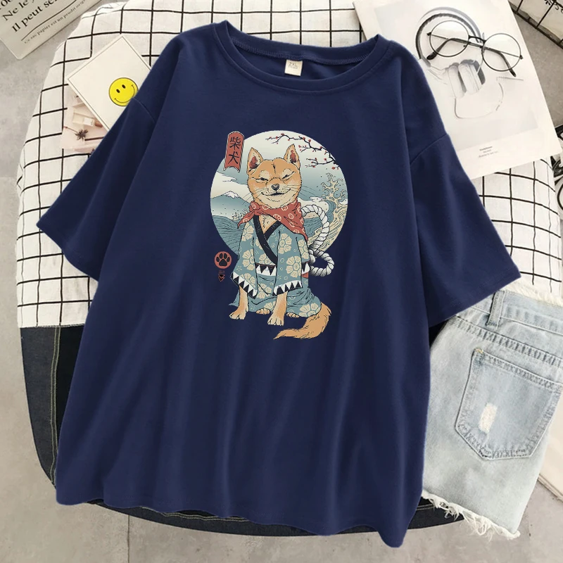 Крутые Японские Женские футболки с принтом кошки Shinobi, дышащая л...
