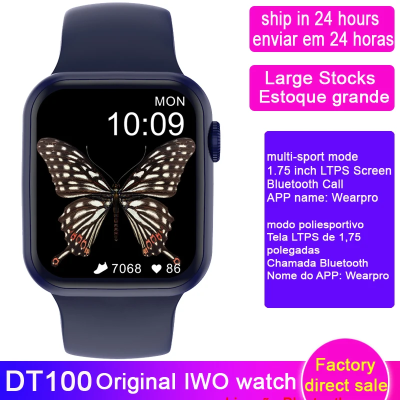 Новинка! Оригинальные Смарт-часы DT100 IWO для мужчин и женщин, Bluetooth звонки, 1,75 дюйма, 3D сенсорный экран, IP68 Водонепроницаемые Смарт-часы