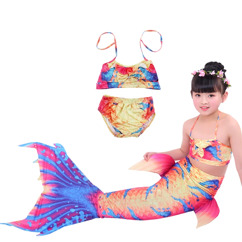 Купальник для девочек с хвостом русалки на Хэллоуин, детский праздничный купальник-бикини, детское платье принцессы, костюм