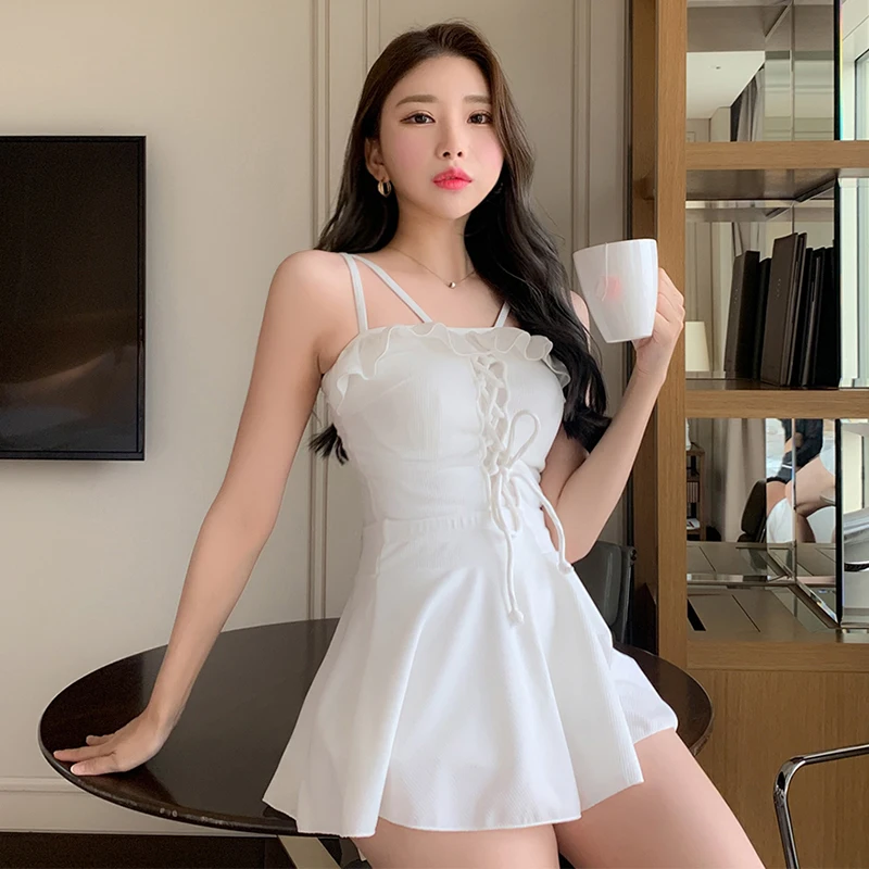 Женский слитный купальник, однотонный слитный купальный костюм из двух предметов, купальник-монокини с оборками, пуш-ап, в Корейском стиле