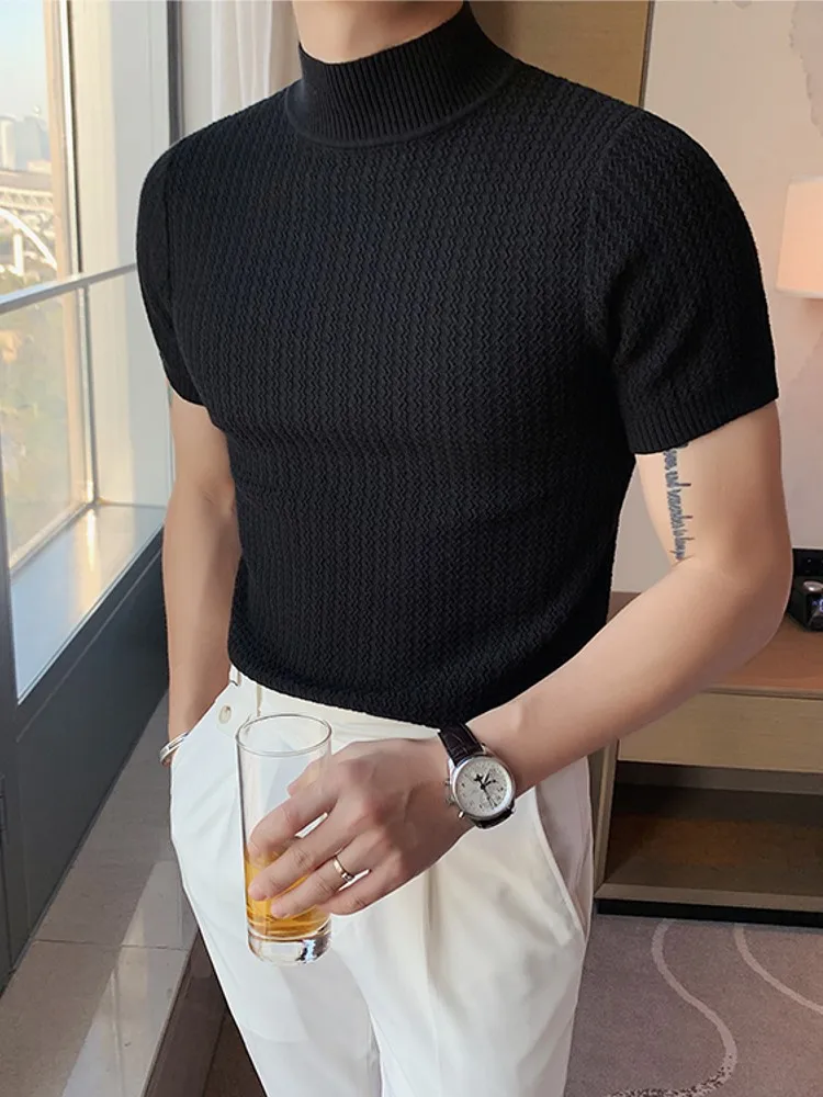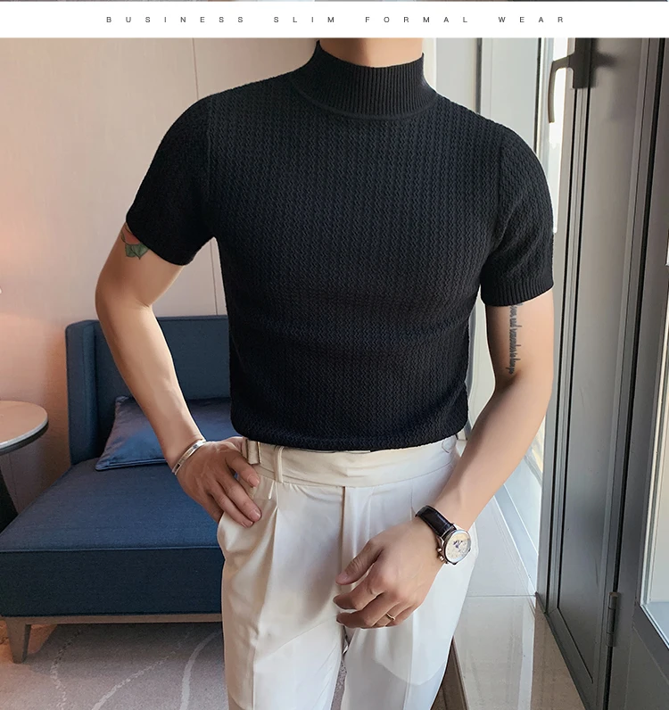Мужской базовый свитер с коротким рукавом и ложным воротником, облегающий трикотажный топ, модная одежда 2021, трикотажная одежда для весны и осени, мужские пуловеры