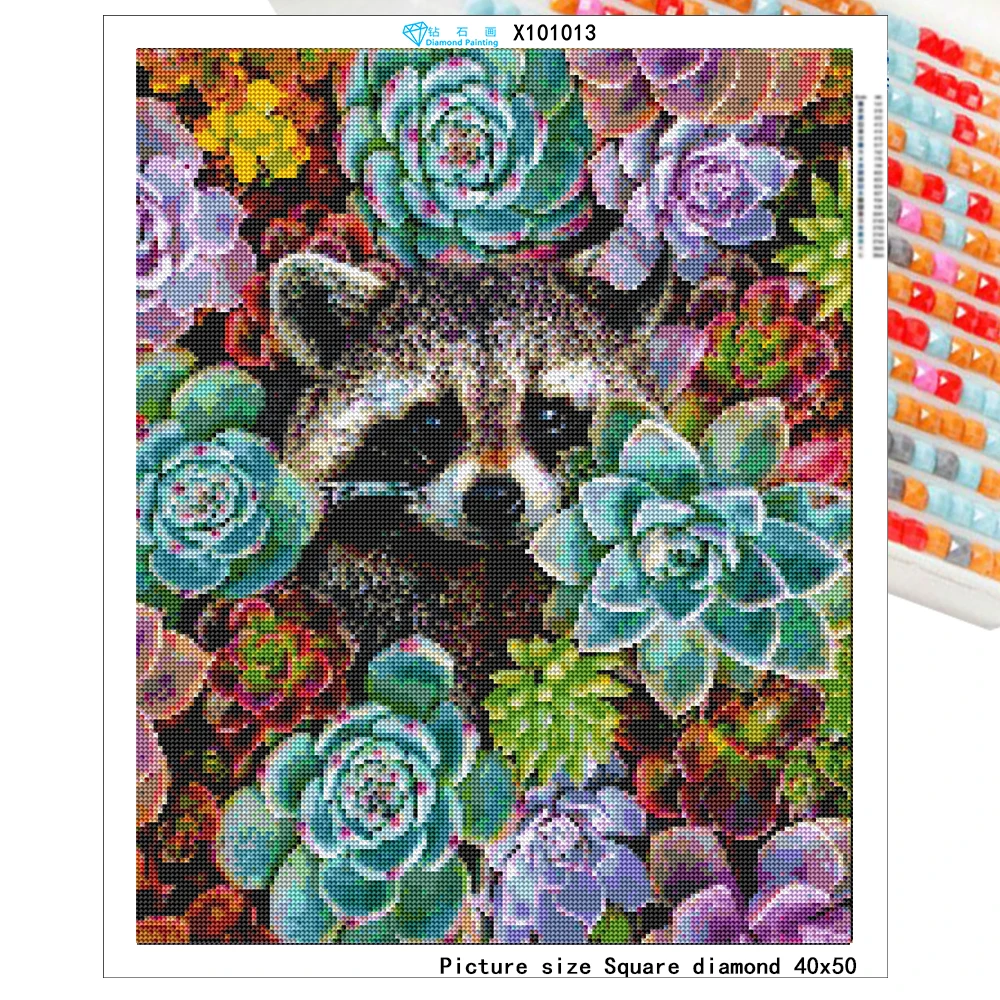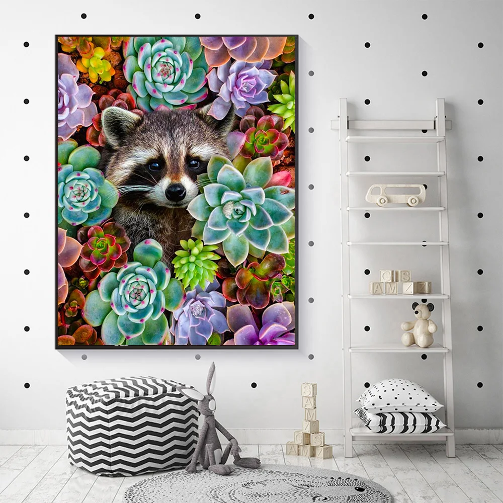 Алмазная картина DUTEY с изображением животных, растений-суккулентов, квадратная круглая Алмазная вышивка, милый енот, мозаика для домашнего декора