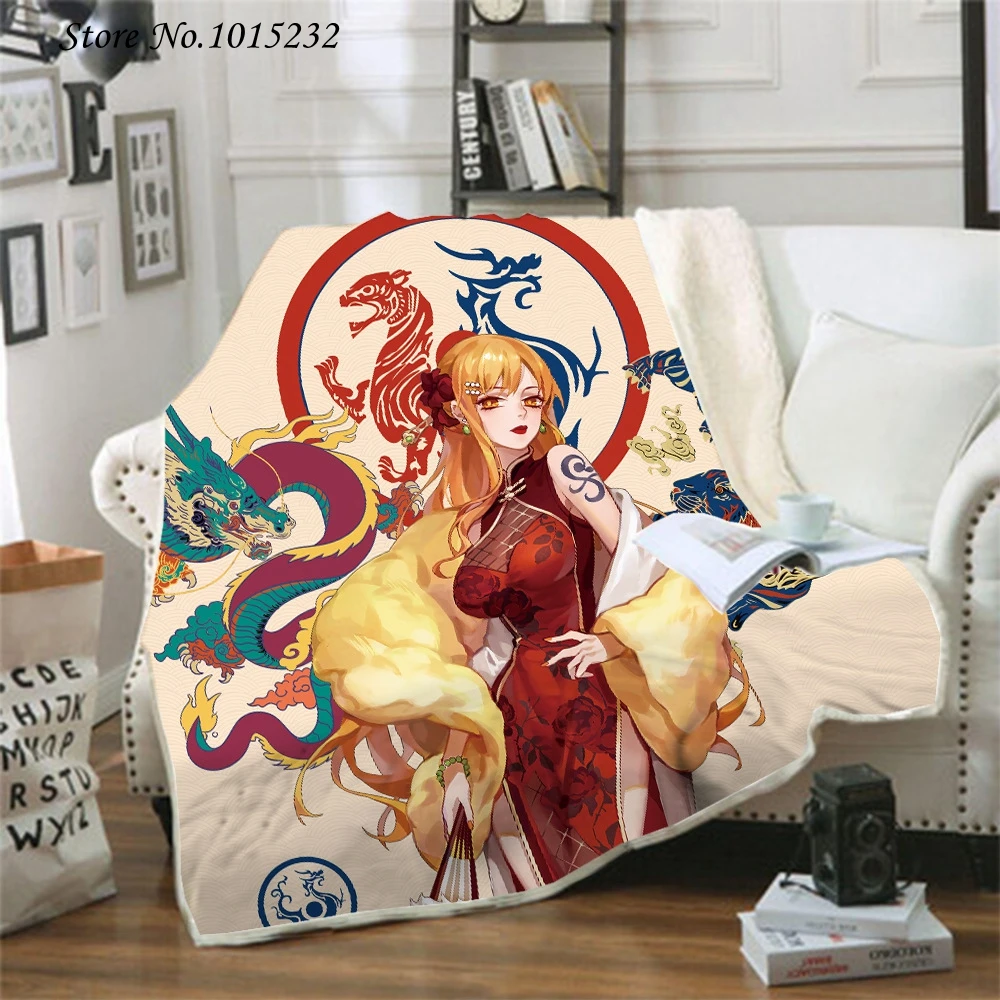 Новое бархатное одеяло в японском аниме 3D, плюшевое покрывало для ...