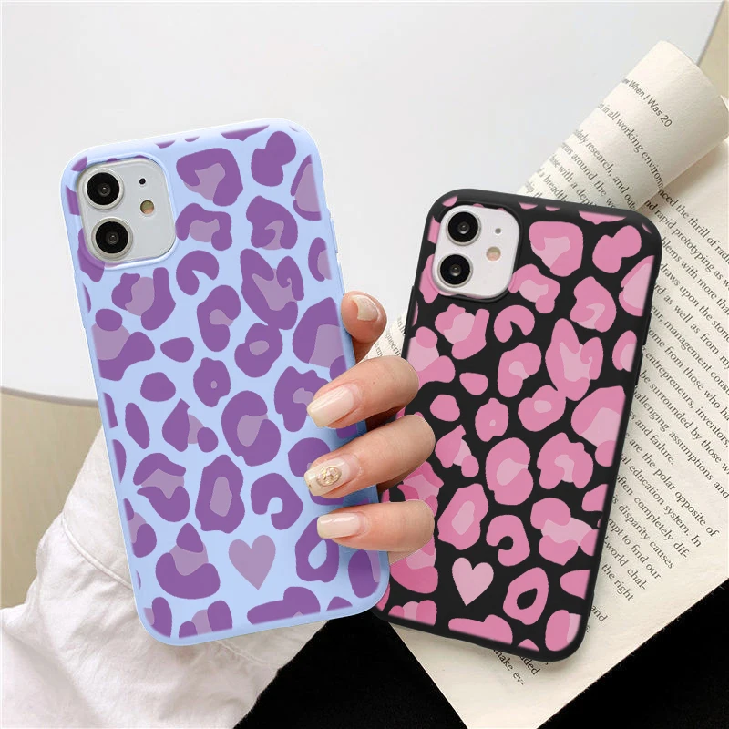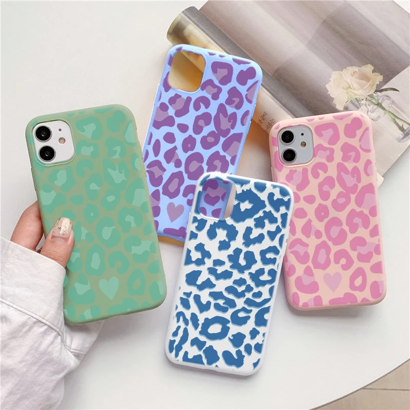 Мягкий чехол для телефона с леопардовым принтом карамельных цветов для iPhone 11 12 Pro Max Mini 11Pro XS Max X XR 7 8 6 S Plus 5 SE3 2020, задняя крышка из ТПУ