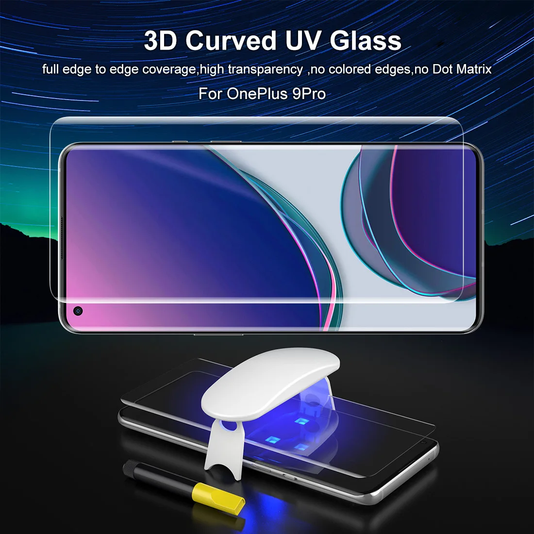 Защита экрана для Oneplus 9 Pro, закаленное стекло с полным покрытием, ультрафиолетовая стеклянная пленка для 1 + 9 pro, аксессуары для телефонов