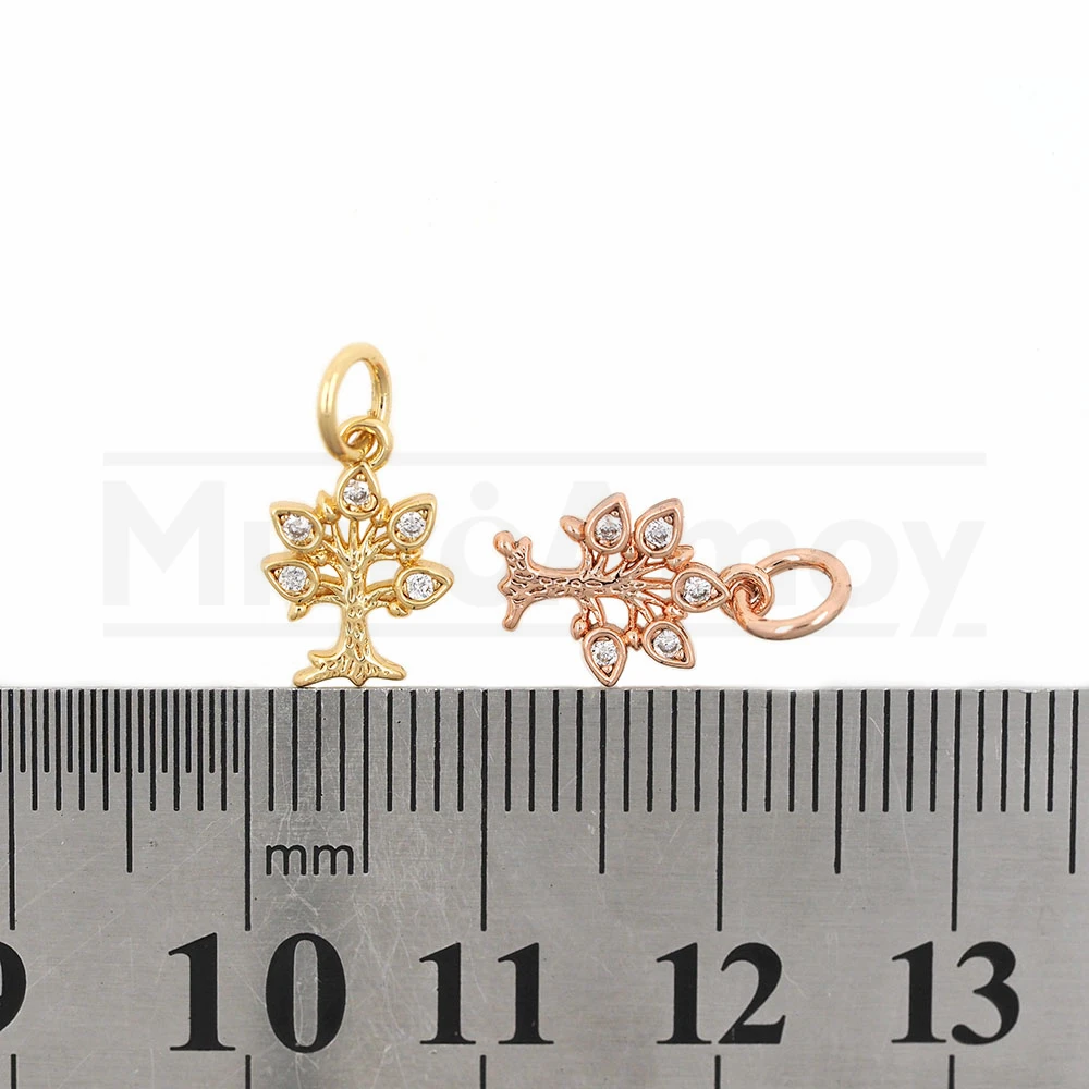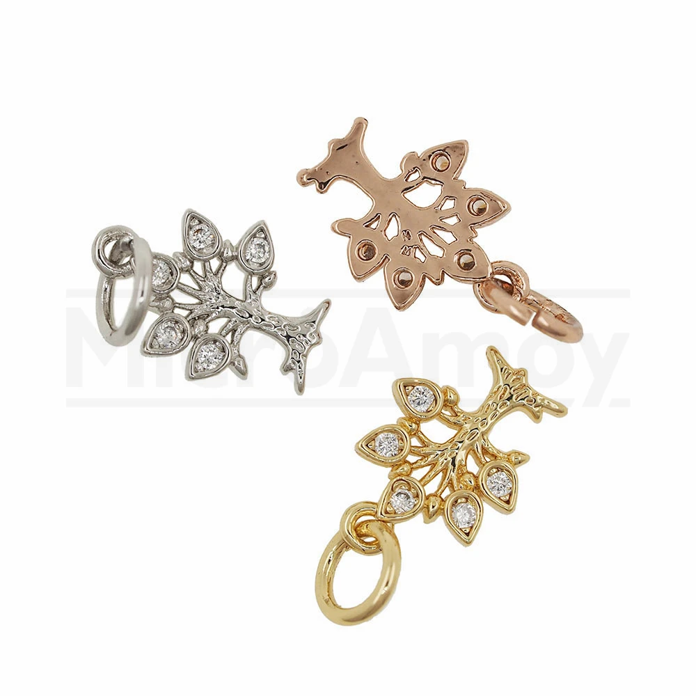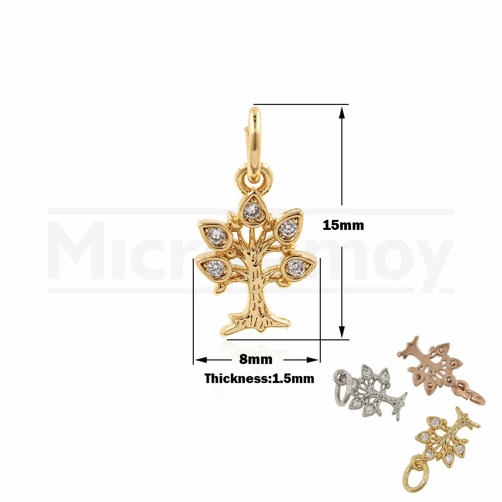 Латунный позолоченный кулон в виде дерева жизни, кубический цирконий, дерево, ожерелье, DIY ювелирные изделия, браслет, серьги, аксессуары 15x8x1,5 мм