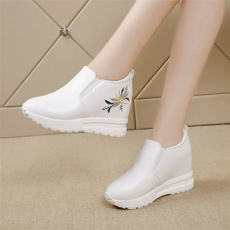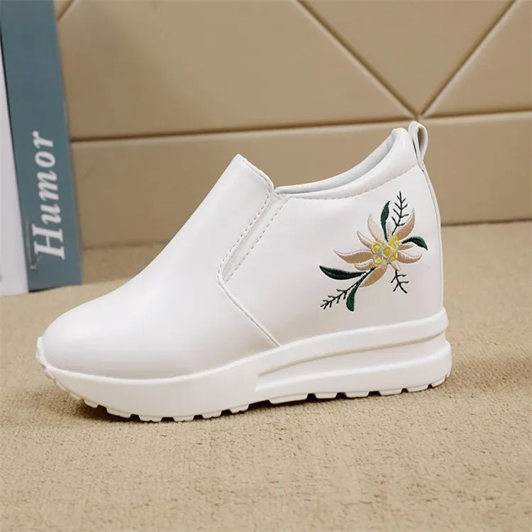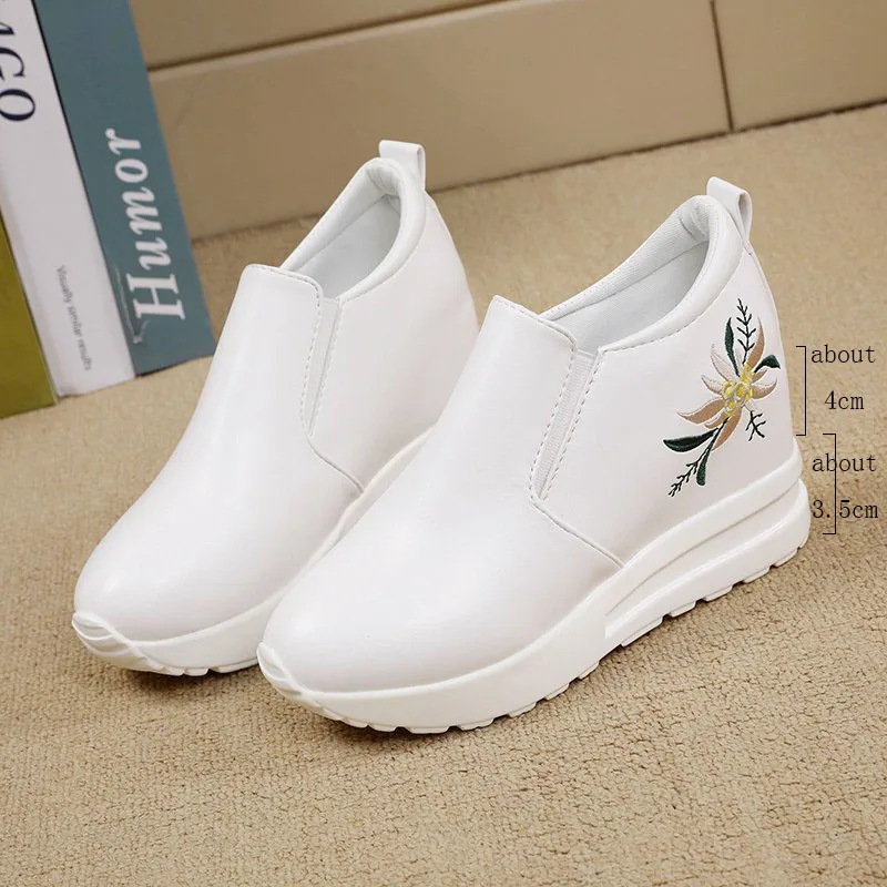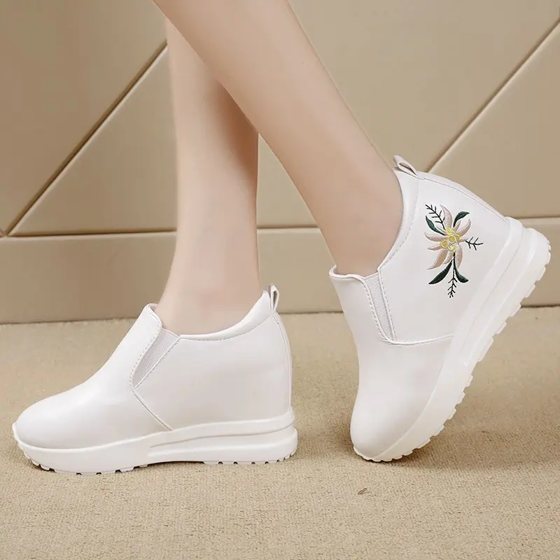 Белые кроссовки на скрытой танкетке; Повседневная обувь; Женская обувь на высокой платформе; Женская обувь на высокой танкетке