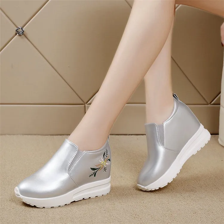 Женские Скрытые кроссовки на танкетке, лето 2021, золотистые, сереб...