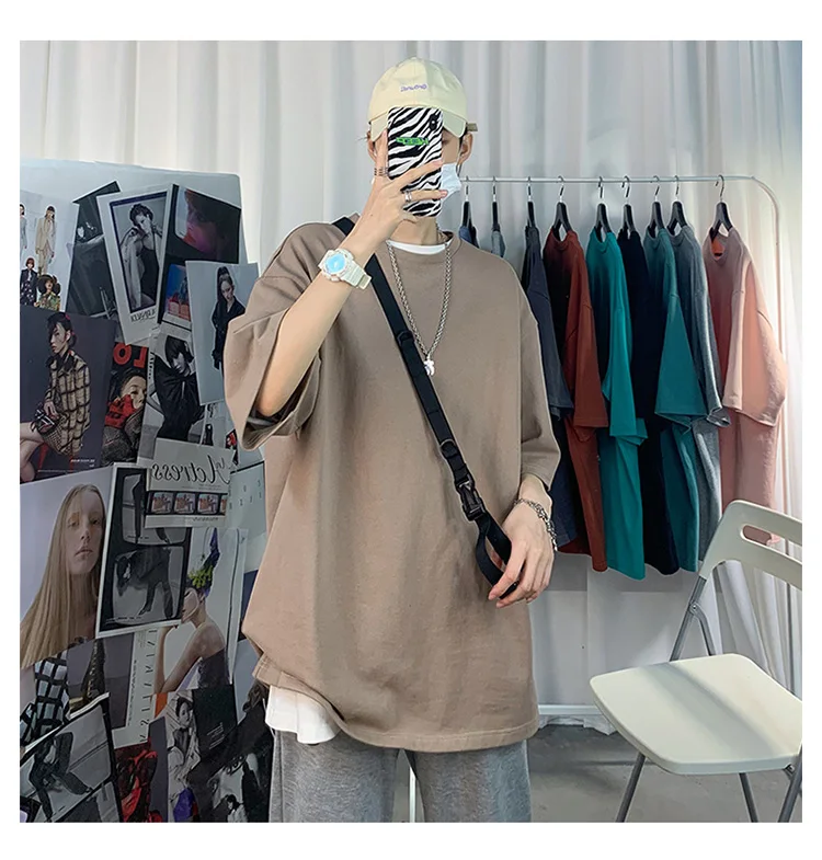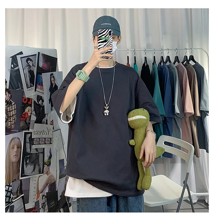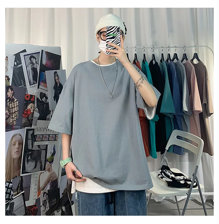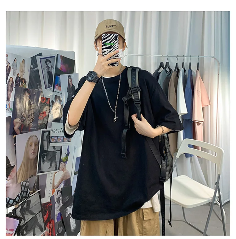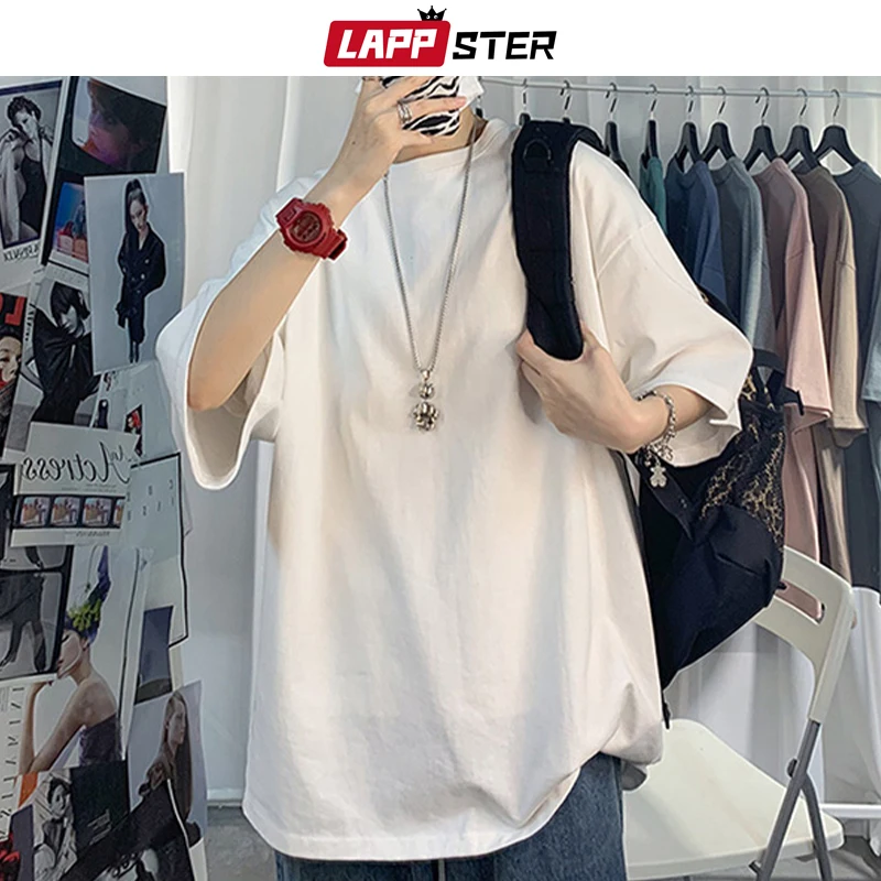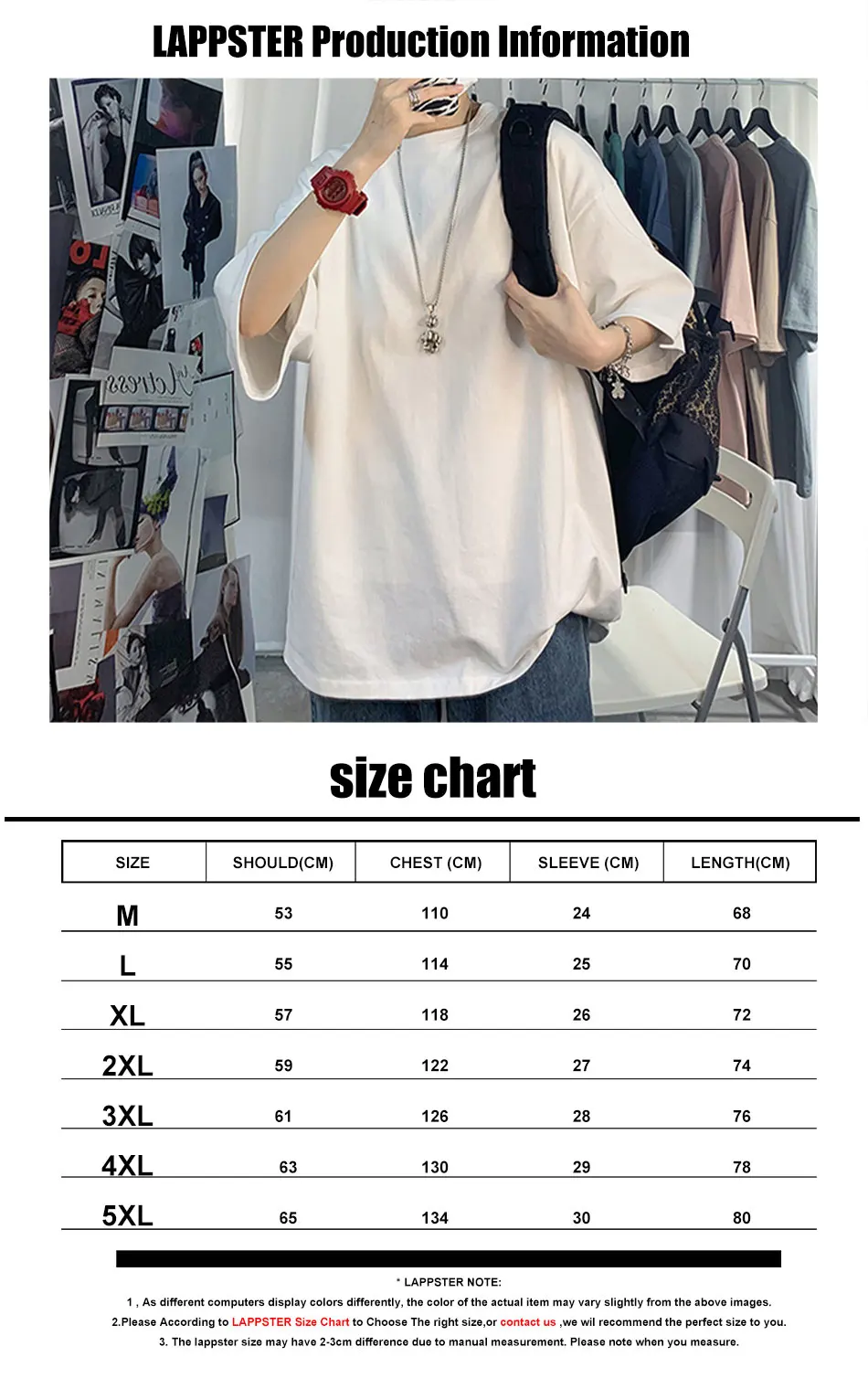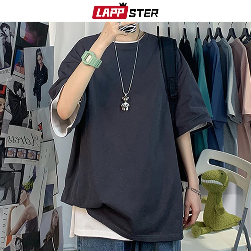 Мужская хлопковая футболка LAPPSTER, разноцветная уличная футболка большого размера, летняя, в японском стиле, в стиле Харадзюку, 2021