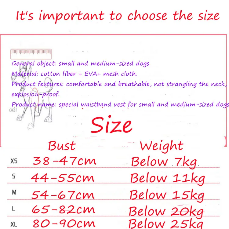Общий объект: маленькие и средние собаки. Материал: хлопковое волокно + Эва + сетчатая ткань. Характеристики продукта: удобные и дышащие, не душат шею, взрывозащищенные. Название продукта: жилет с особым поясом для маленьких и средних собак
