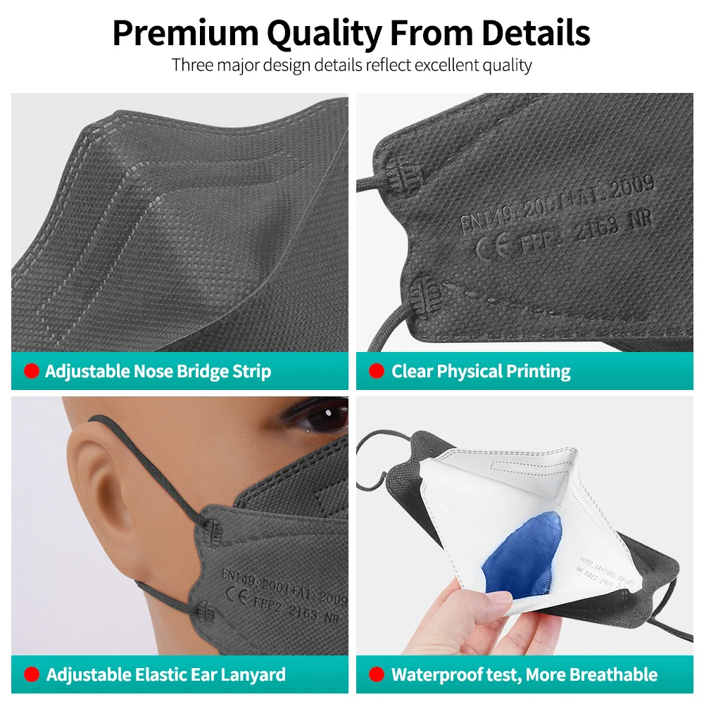 5-200 шт KN95 Mascarillas FFP2 Negras ffp2mask одобренный CE FPP2 H...