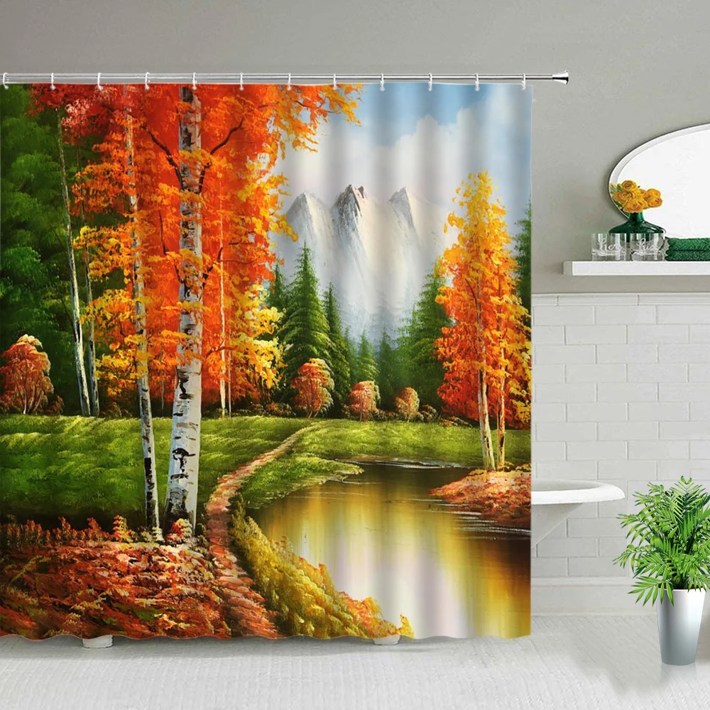 Занавеска для ванной комнаты с изображением леса лосей и эльфов