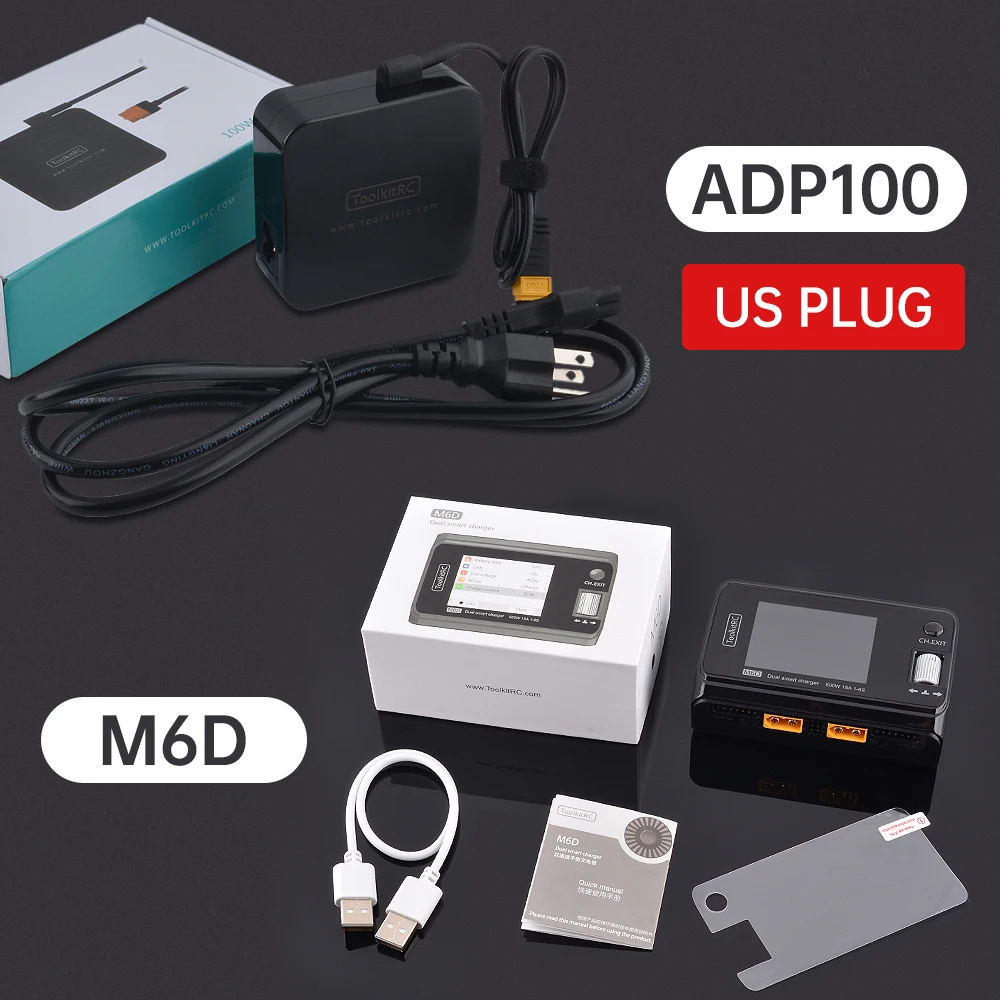 M6D 15A X 2 DC двухканальный выход 1-6s зарядное устройство Dis зарядное устройство и ADP100 100 Вт 20 в 5 А источник питания инструментарий для радиоуправляемых моделей Игрушек