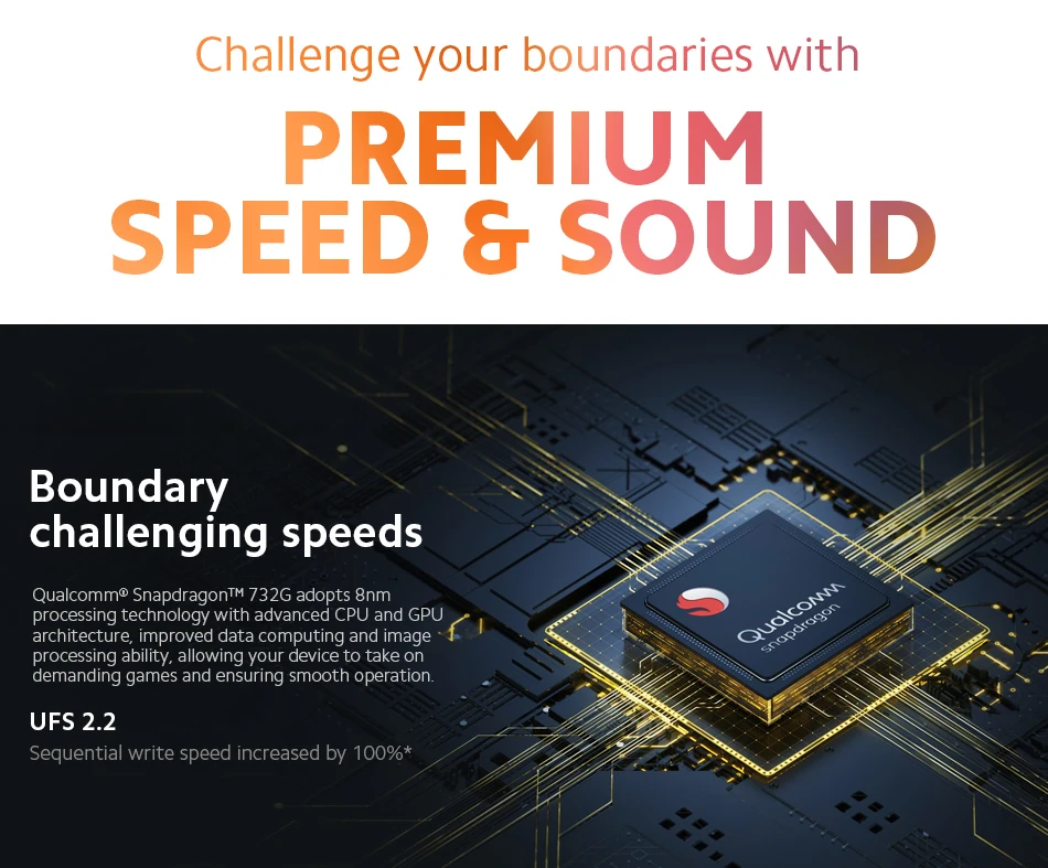Qualcomm Snapdragon 732G использует технологию обработки 8 нм с передовым ЦП и GPUarchitecture, улучшенными вычислительными данными и возможностями обработки изображений, что позволяет вашему устройству взять на себя сложные игры и обеспечить плавную работу.